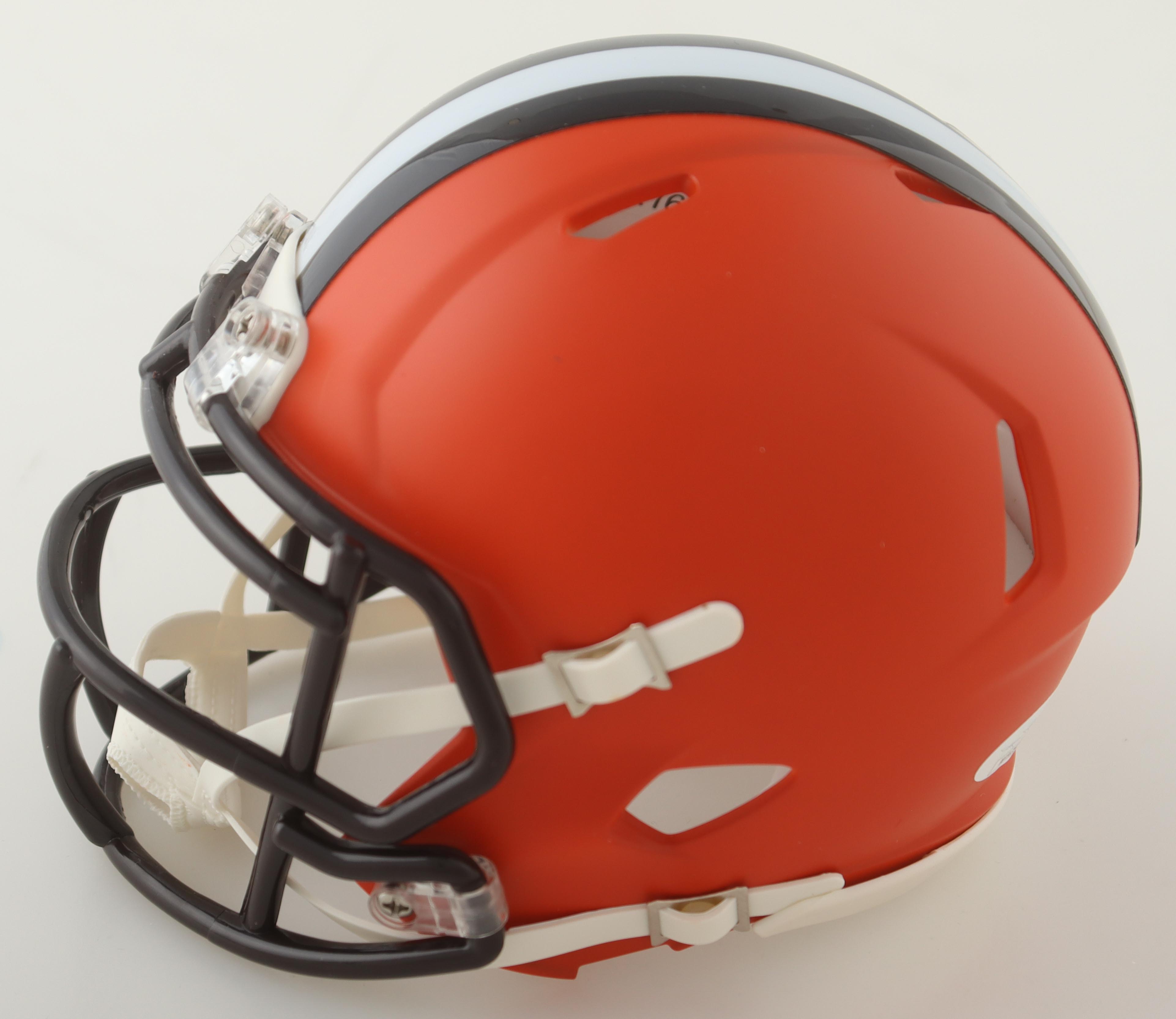 Riddell Cleveland Browns Speed mini helmet has been hand-signed and inscribed by Greg Pruitt.