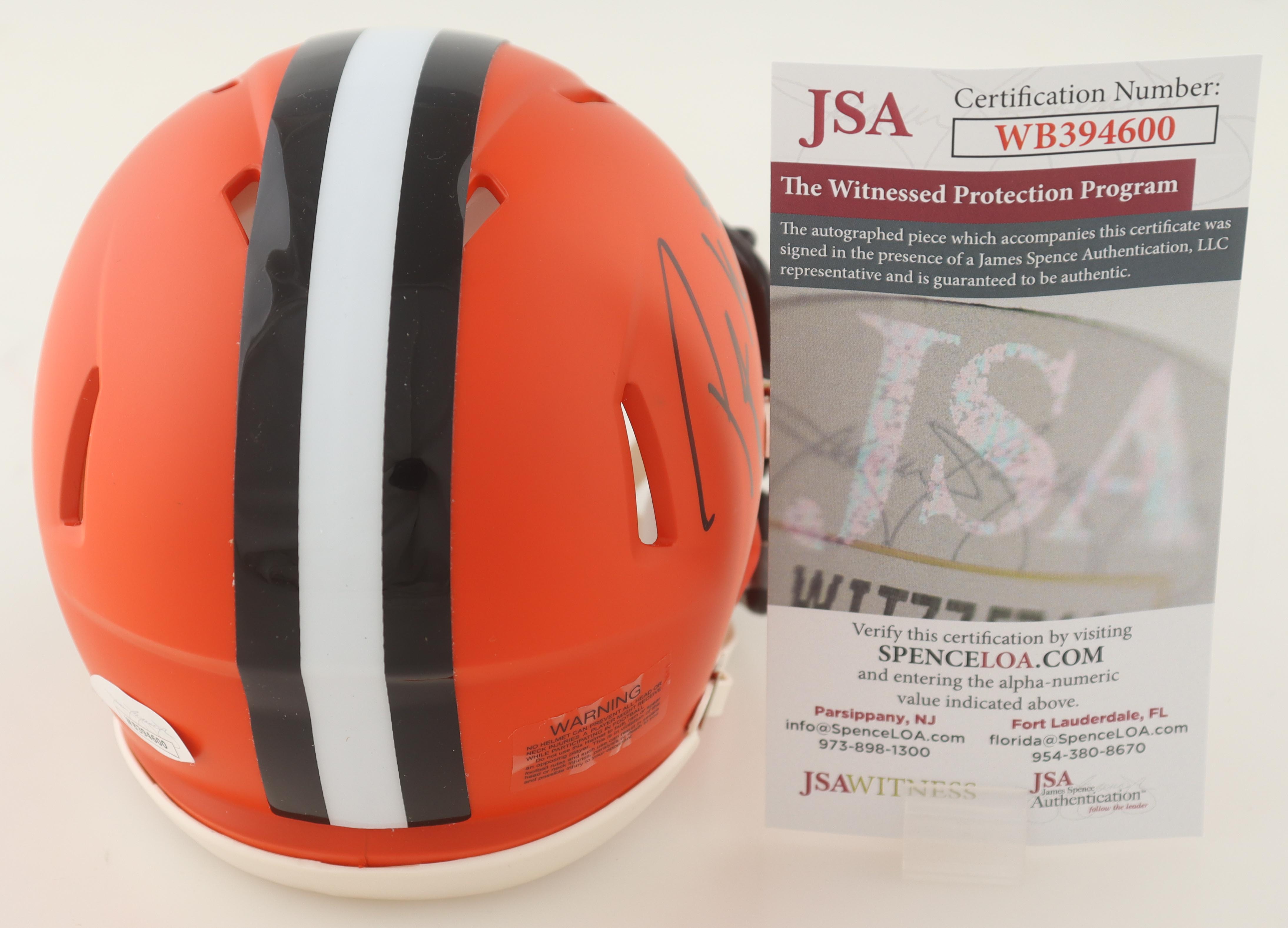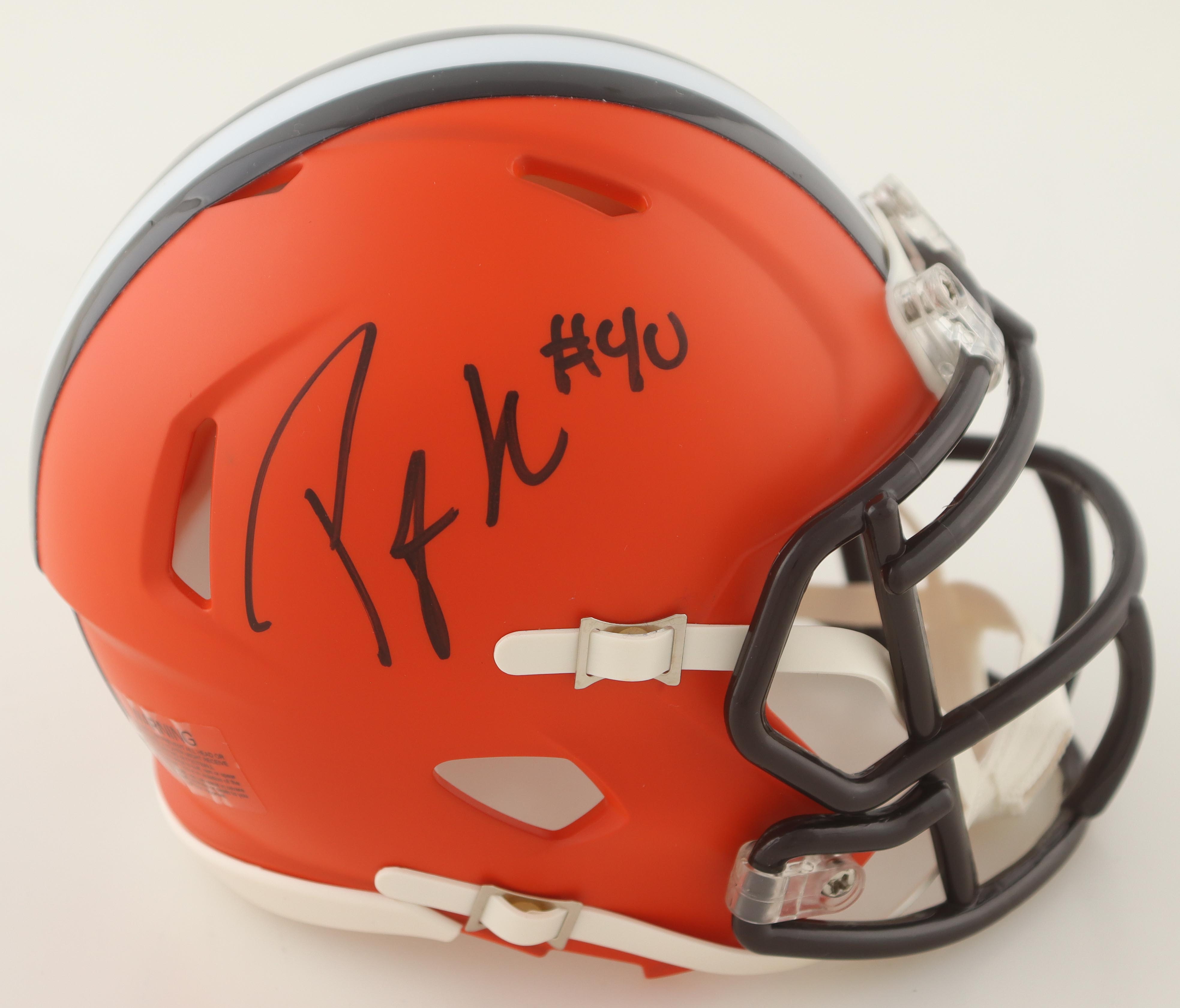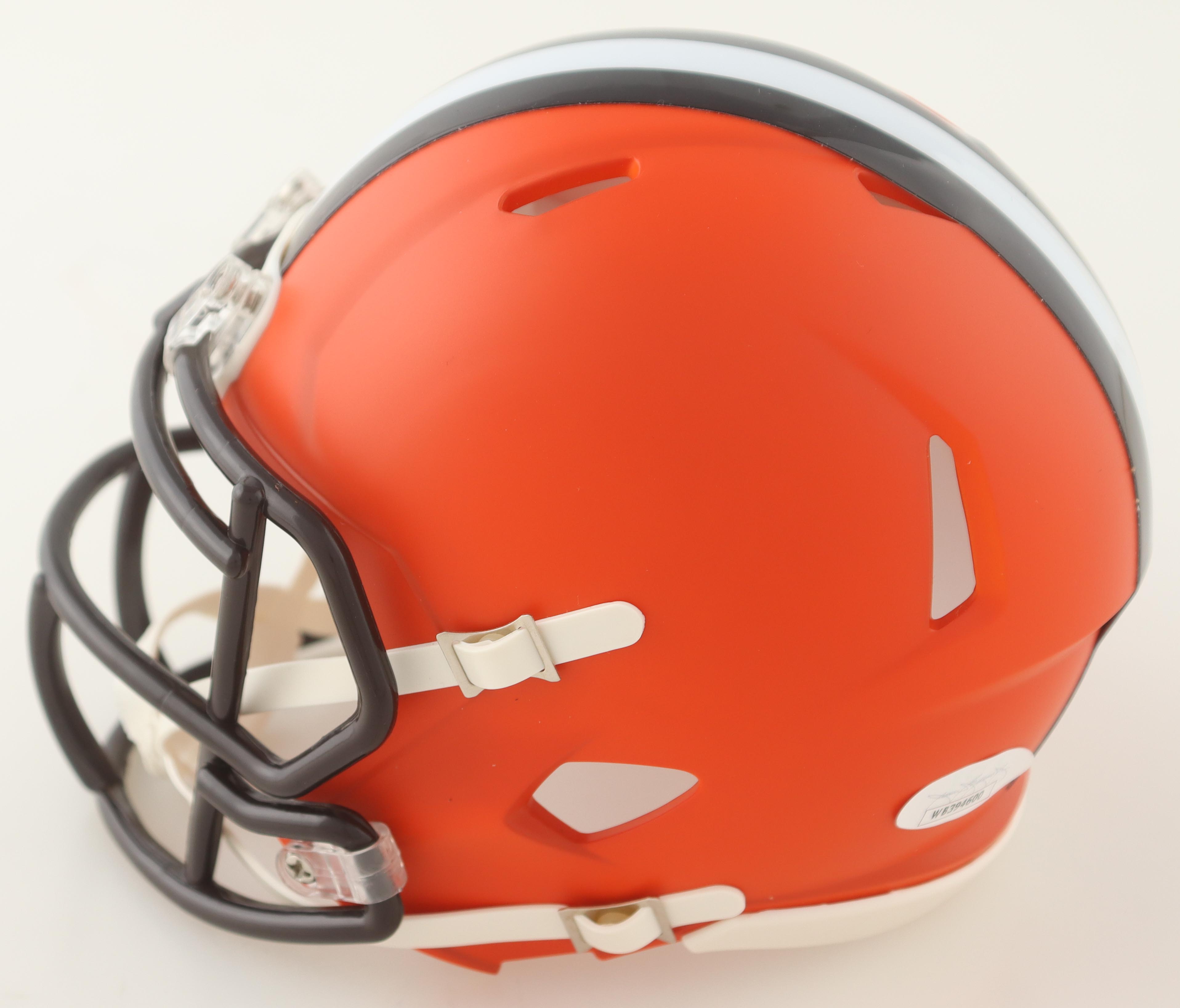 Riddell Cleveland Browns speed mini helmet. Hand-signed by Peyton Hillis.