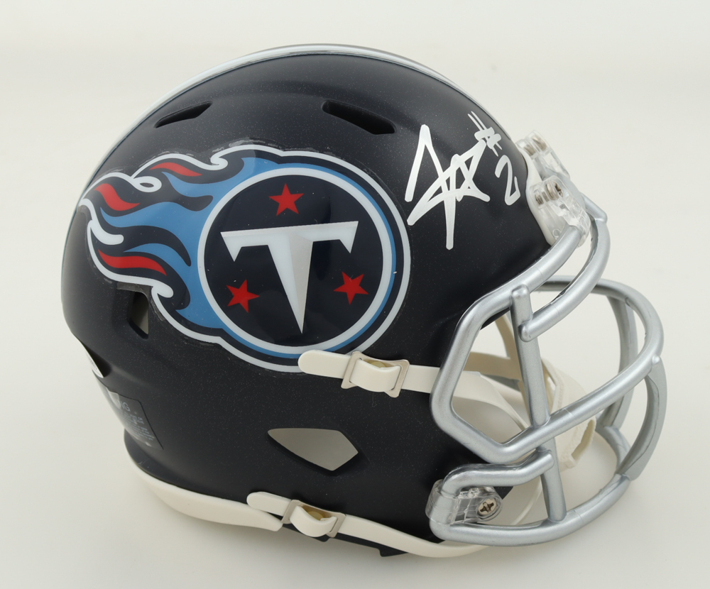 Riddell Tennessee Titans Speed mini helmet. Hand-signed by Tyjae Spears.