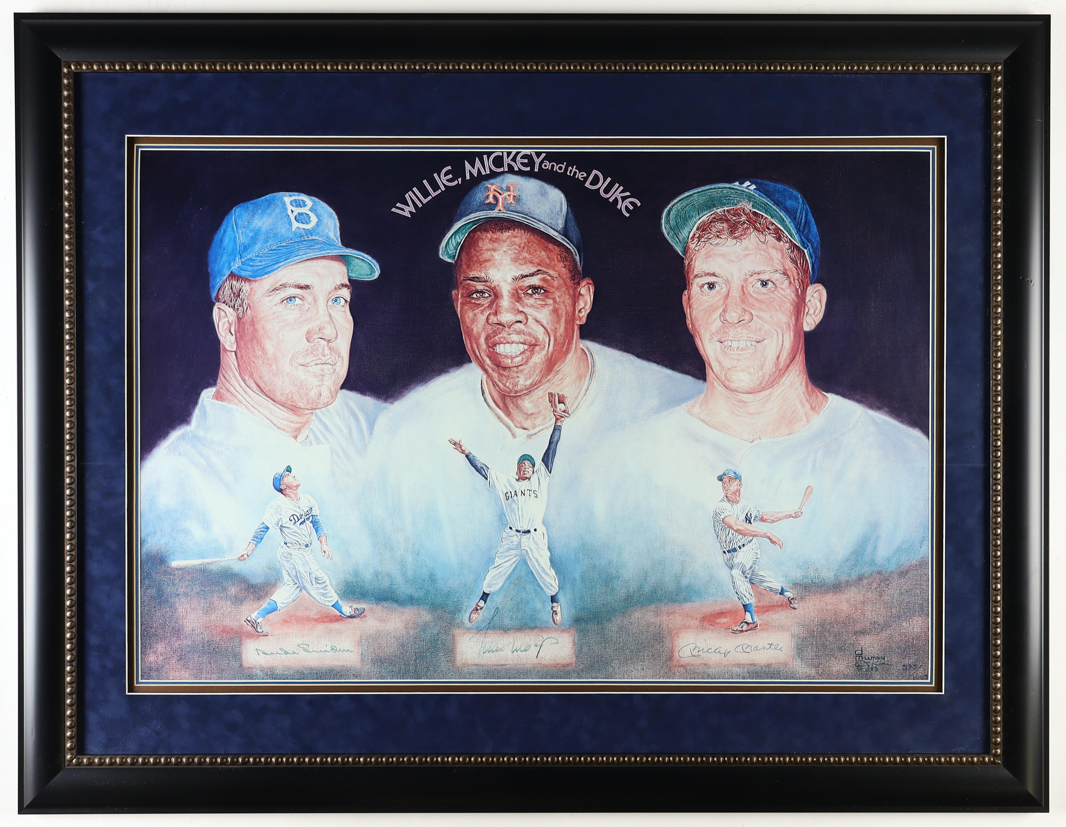 Mickey Mantle, Willie Mays & Duke Snider Signed LE Custom Framed Art Print Display #595/1603 (Beckett)