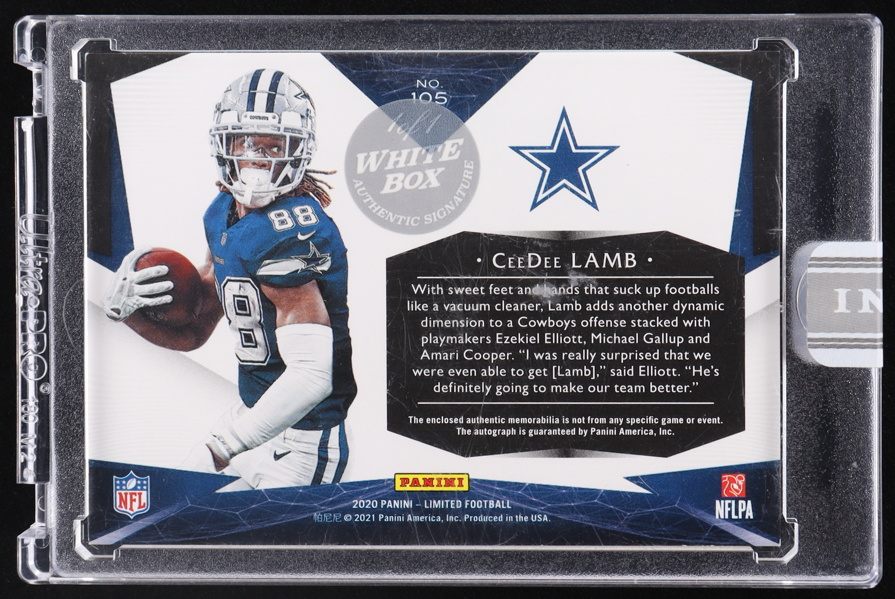 CeeDee Lamb 2020 Limited Patch Autographs White Box #105 RC #1/1