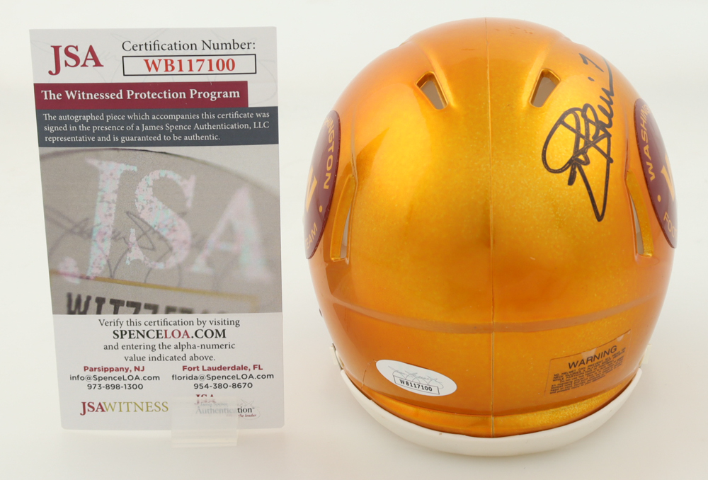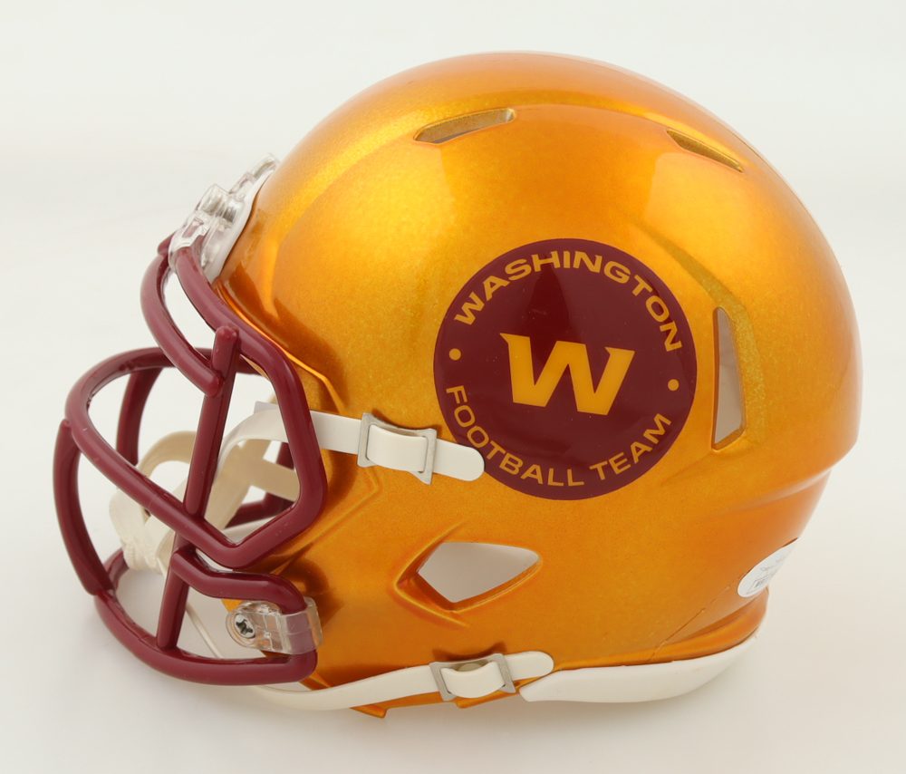Riddell Washington Commanders Flash Alternate Speed mini helmet. Hand-signed and inscribed by Joe Theismann.