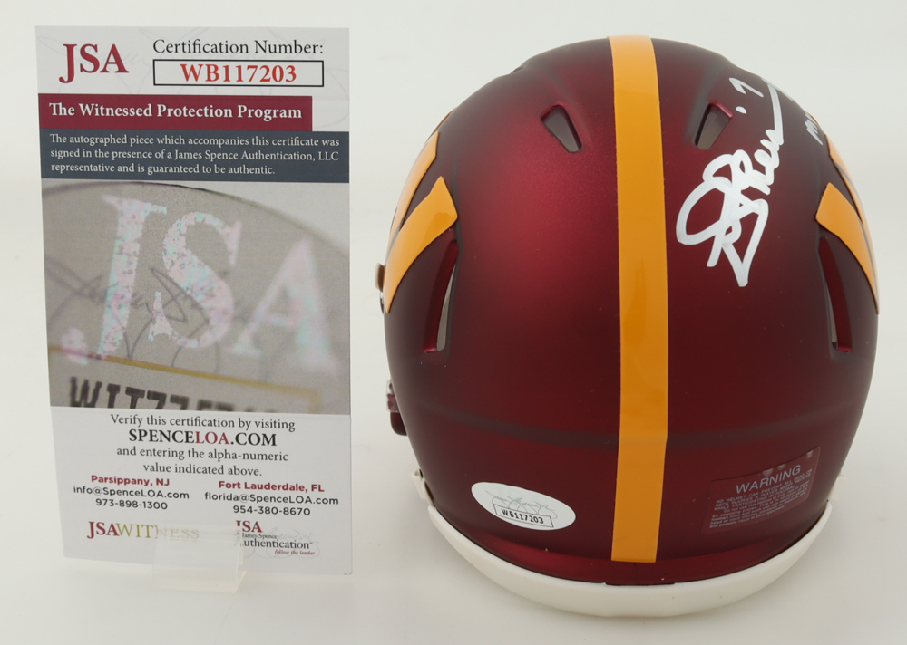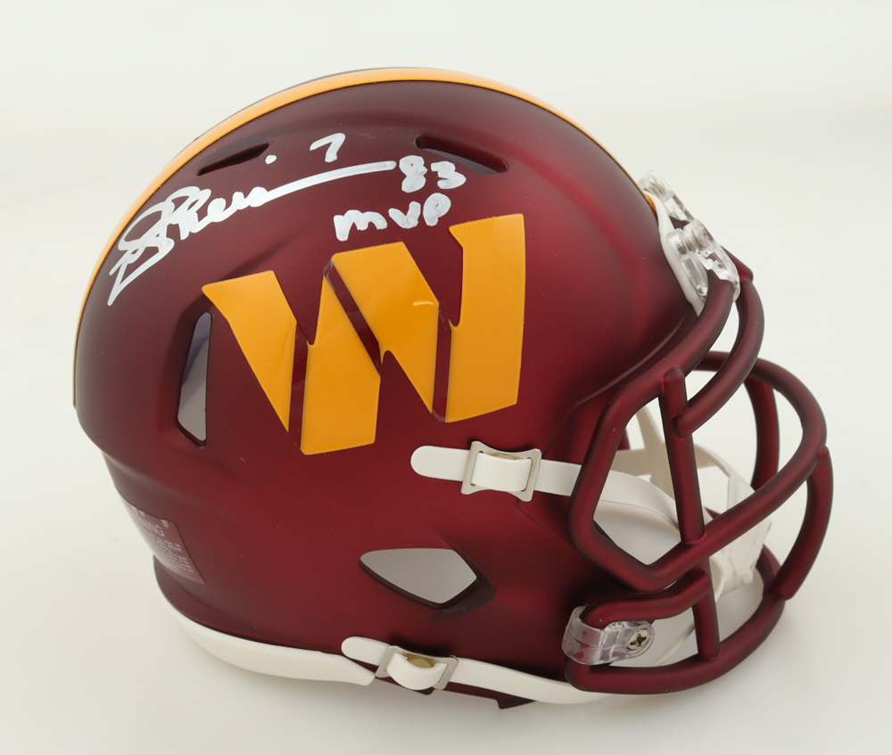 Riddell Washington Commanders Flash Alternate Speed mini helmet. Hand-signed and inscribed by Joe Theismann.
