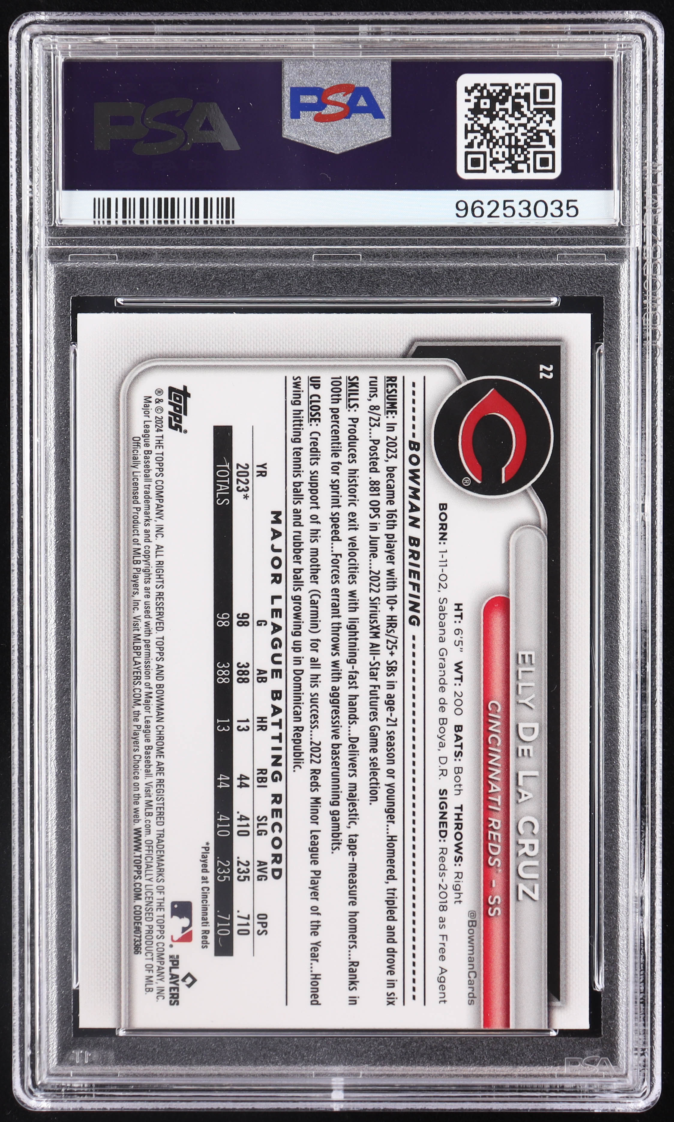 Elly De La Cruz 2024 Bowman Chrome Mega Box #22 RC (PSA 10)