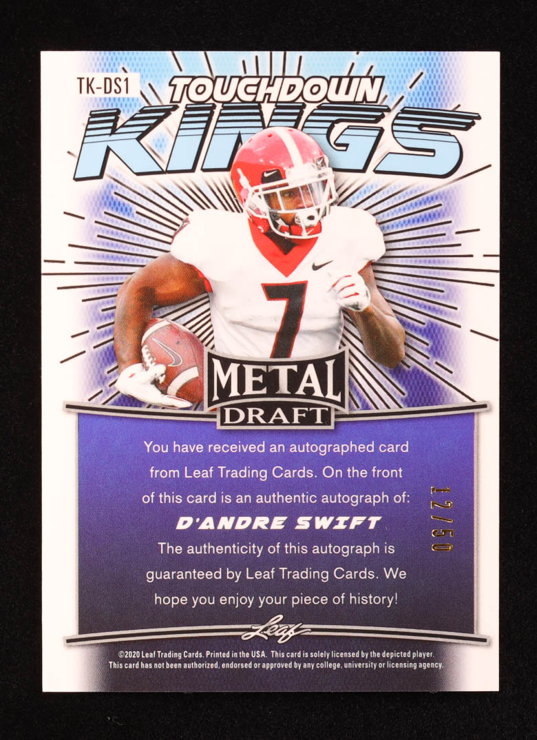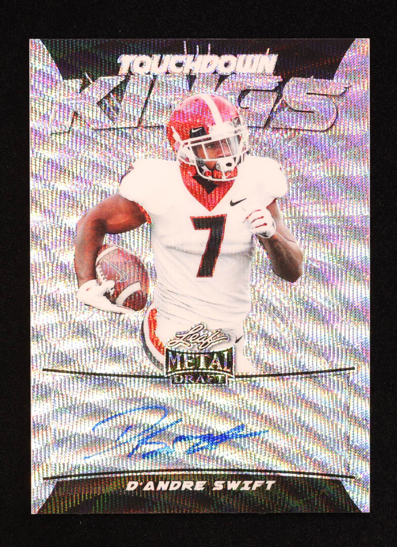 D'Andre Swift 2020 Leaf Metal Draft Touchdown Kings Autographs Silver Wave #TKDS1 RC #12/50