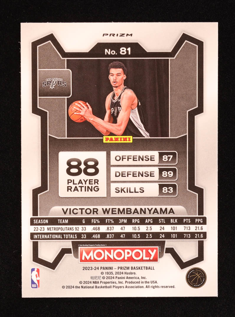 Victor Wembanyama 2023-24 Panini Prizm Monopoly Prizms Purple #81 RC