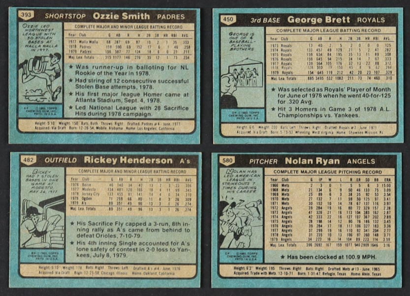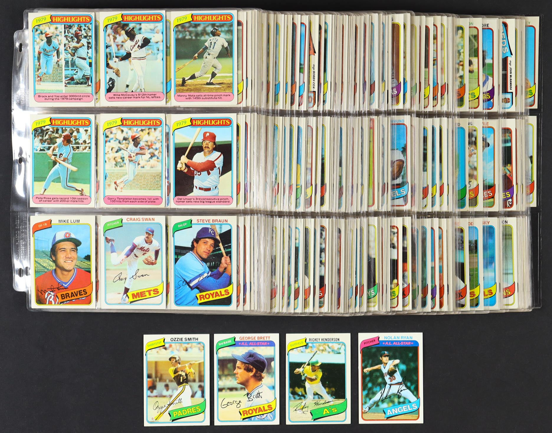 1980 Topps Baseball Complete Set of (726) Cards In Binder with Rickey Henderson #482 RC, Ozzie Smith ##393, George Brett #450, Nolan Ryan #580