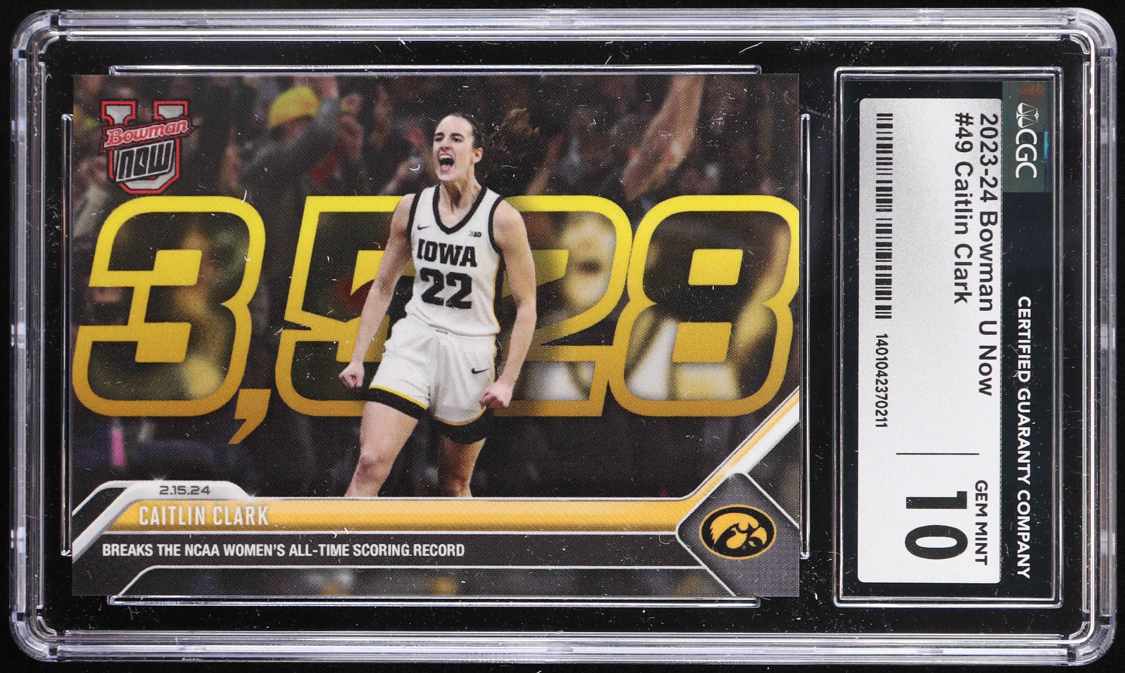 Caitlin Clark 2023-24 Bowman University Now #49 RC (CGC 10)