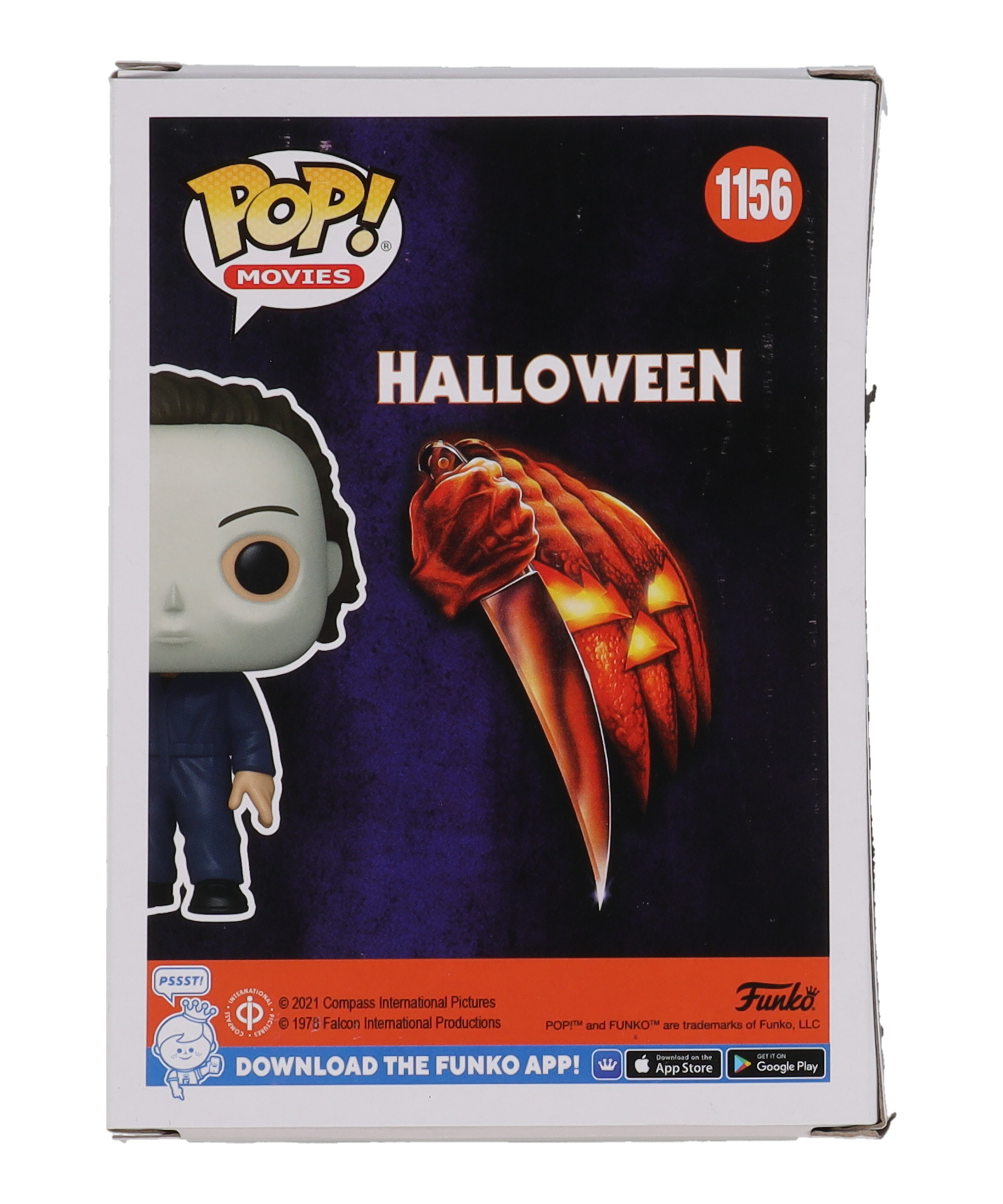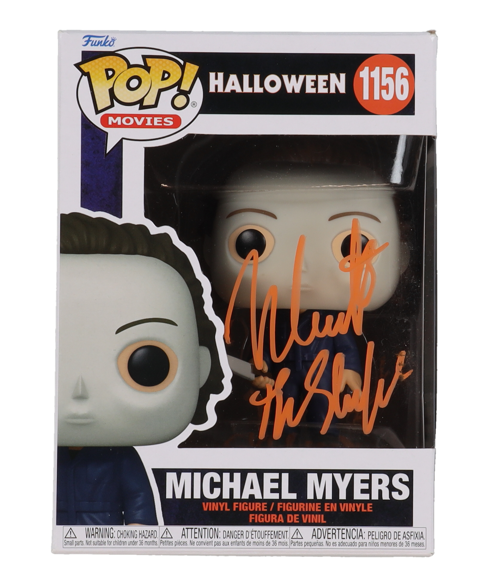 Funko Pop! Vinyl figure measures approximately 4" tall. The packaging has been hand-signed and inscribed by Nick Castle (The Shape/Michael Myers).