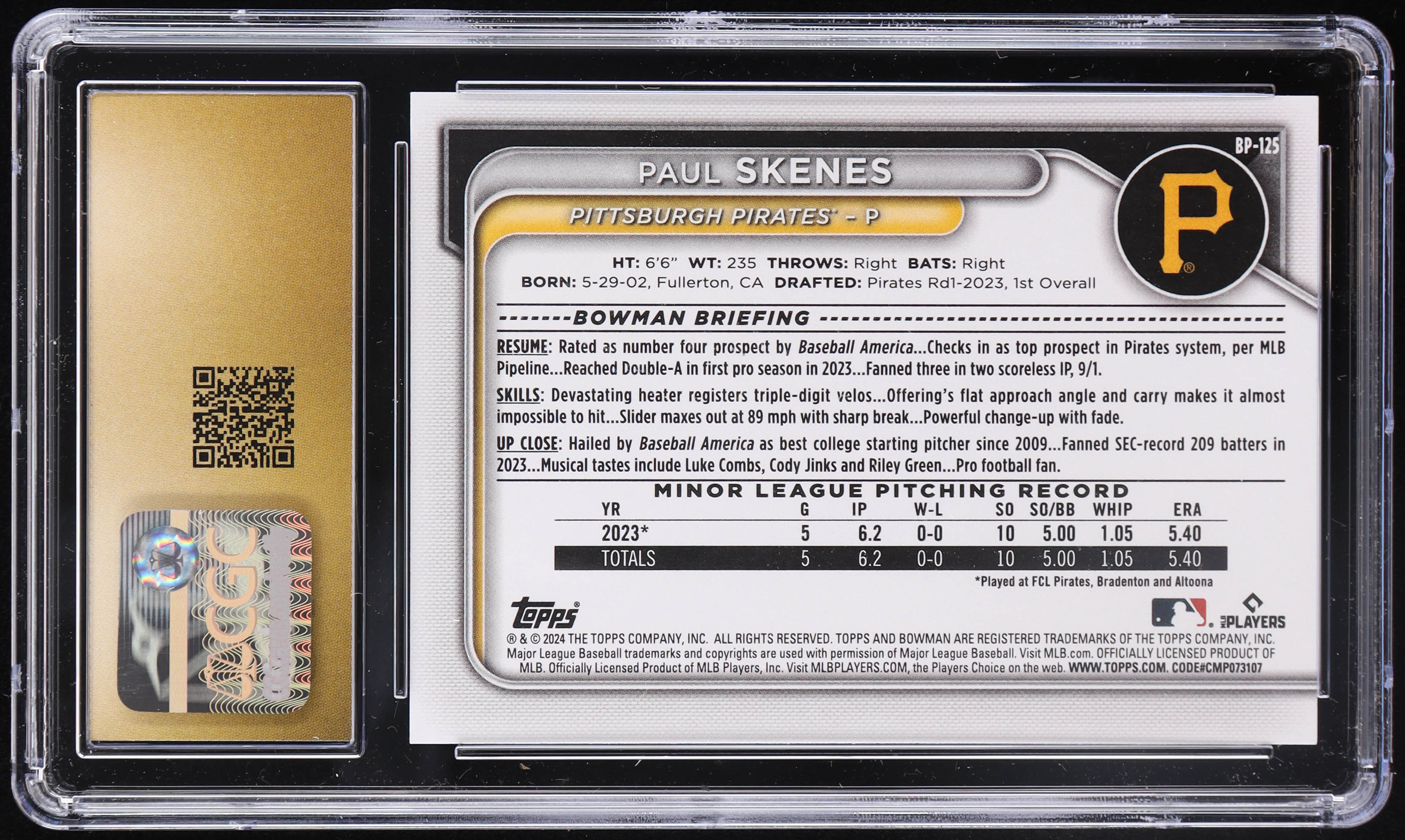 Paul Skenes 2024 Bowman Prospects #BP125 RC (CGC 10 | Pristine Black Label)