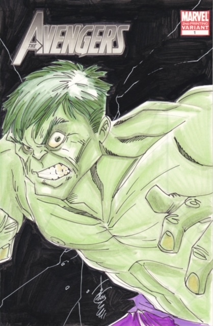 Tom Hodges - The Avengers - Marvel Comics - Issue #1 - Sketch Cover Variant Comic Book with Original 'Hulk' Sketch