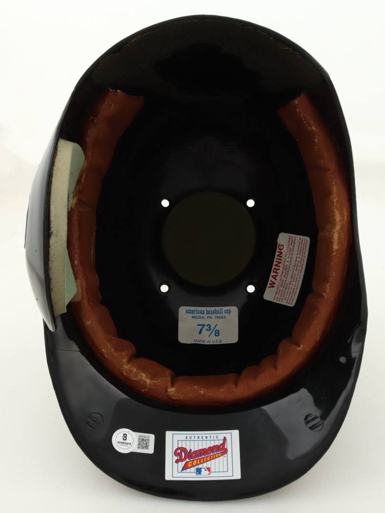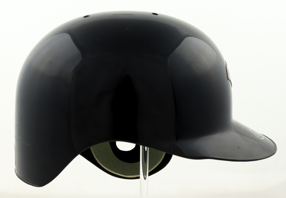 Diamond Collection Baltimore Orioles full size authentic on field batting helmet, size 7 3/8, has been hand-signed by Cal Ripken Jr. (HOF). Please note, there is wear and surface tears on the inside padding of the helmet.