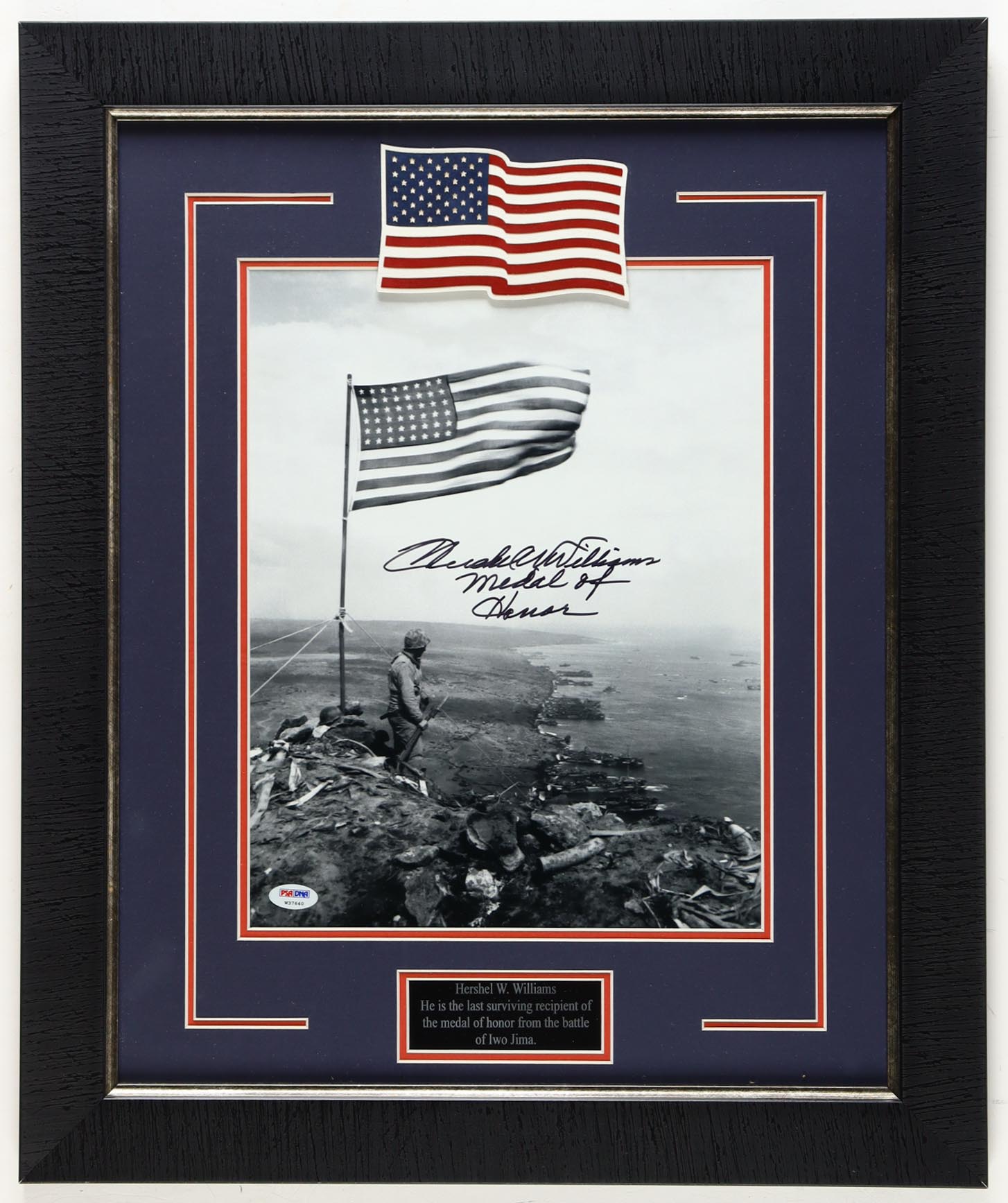 Hershel Williams Signed Battle of Iwo Jima Custom Framed Photo Inscribed "Medal of Honor" (PSA)