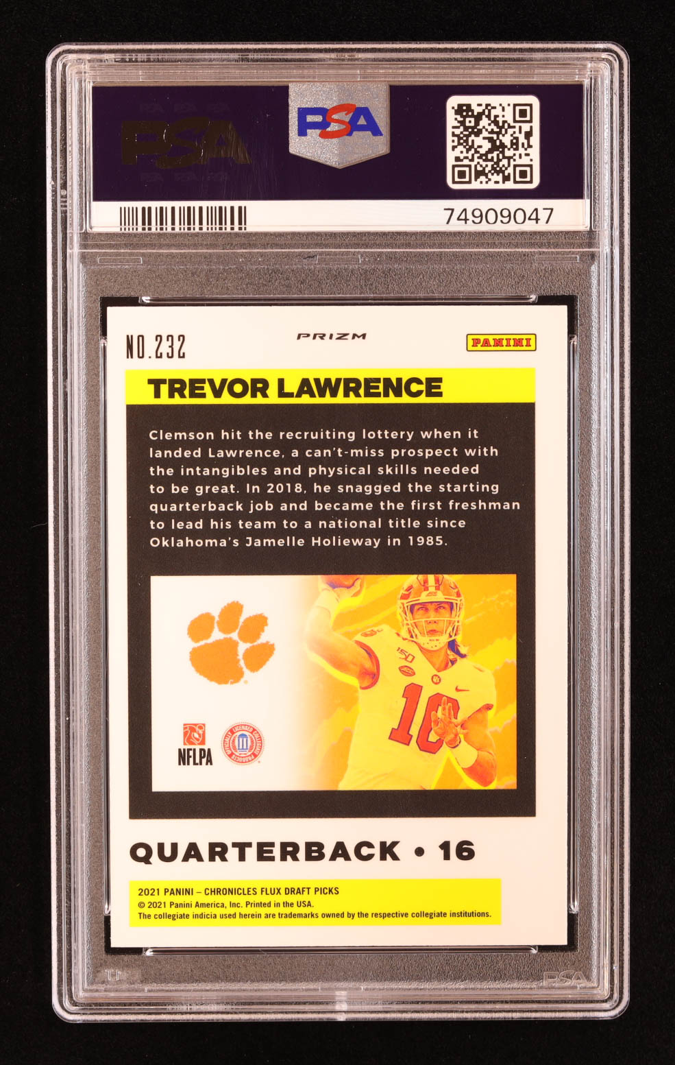 Trevor Lawrence 2021 Panini Chronicles Draft Picks Flux Pink #232 RC (PSA 10)
