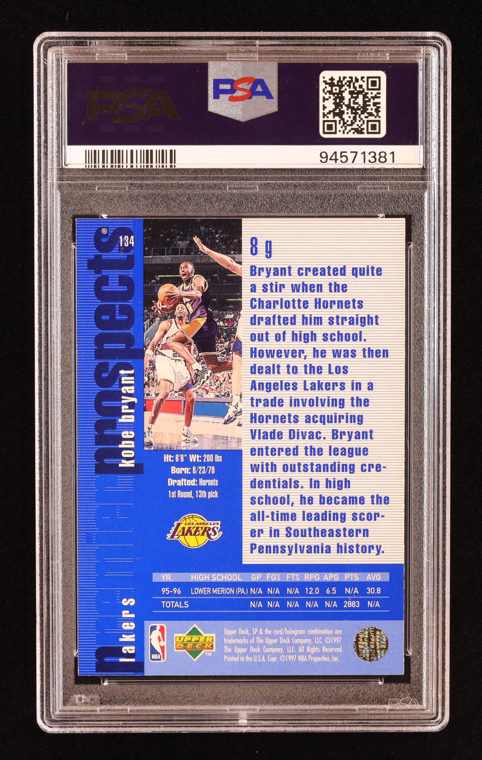 Kobe Bryant 1996-97 SP #134 RC (PSA 9)
