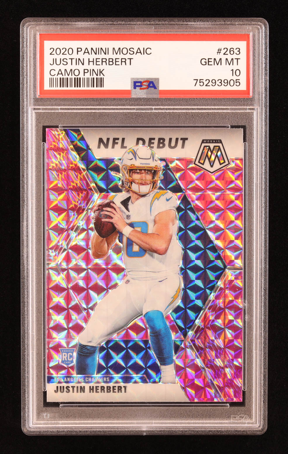 Justin Herbert 2020 Panini Mosaic Mosaic Camo Pink #263 DEB RC (PSA 10)