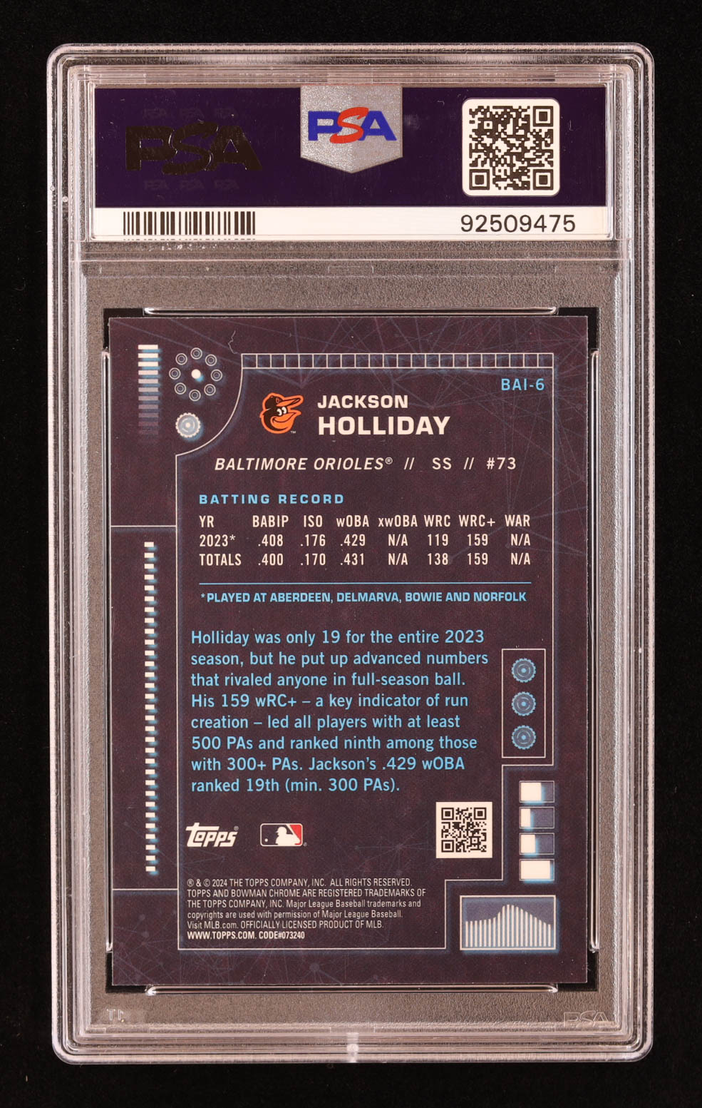 Jackson Holliday 2024 Bowman Chrome Bowman AI #BAI6 RC (PSA 10)