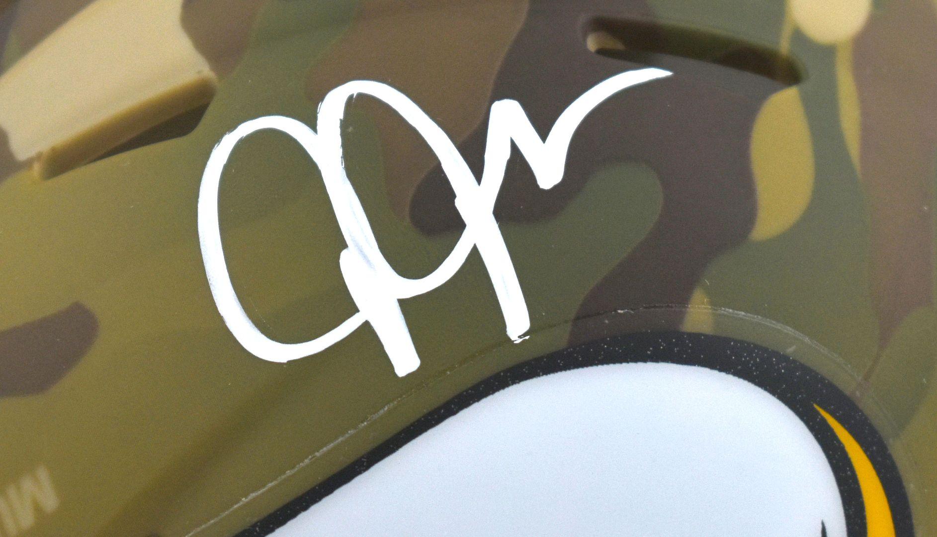 Riddell Minnesota Vikings camo alternate speed mini helmet. Hand-signed by Justin Jefferson.