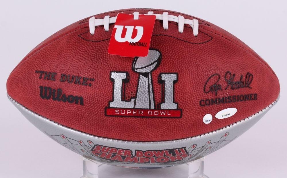 Wilson Super Bowl 51 NFL official game football. Hand-signed in silver paint-pen by Tom Brady (Patriots). Football is limited edition and has been hand-numbered out of 51.