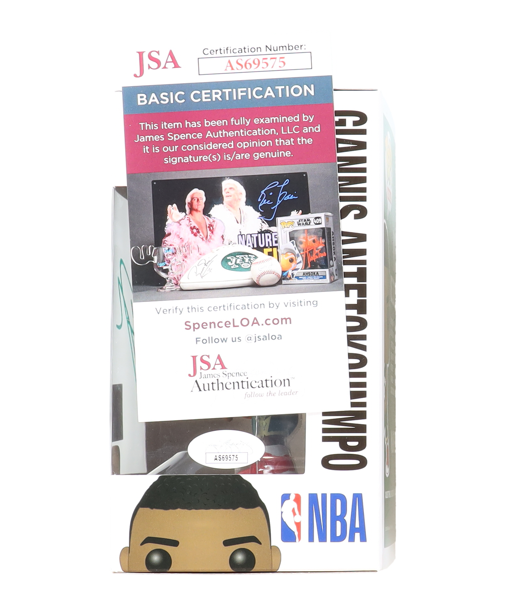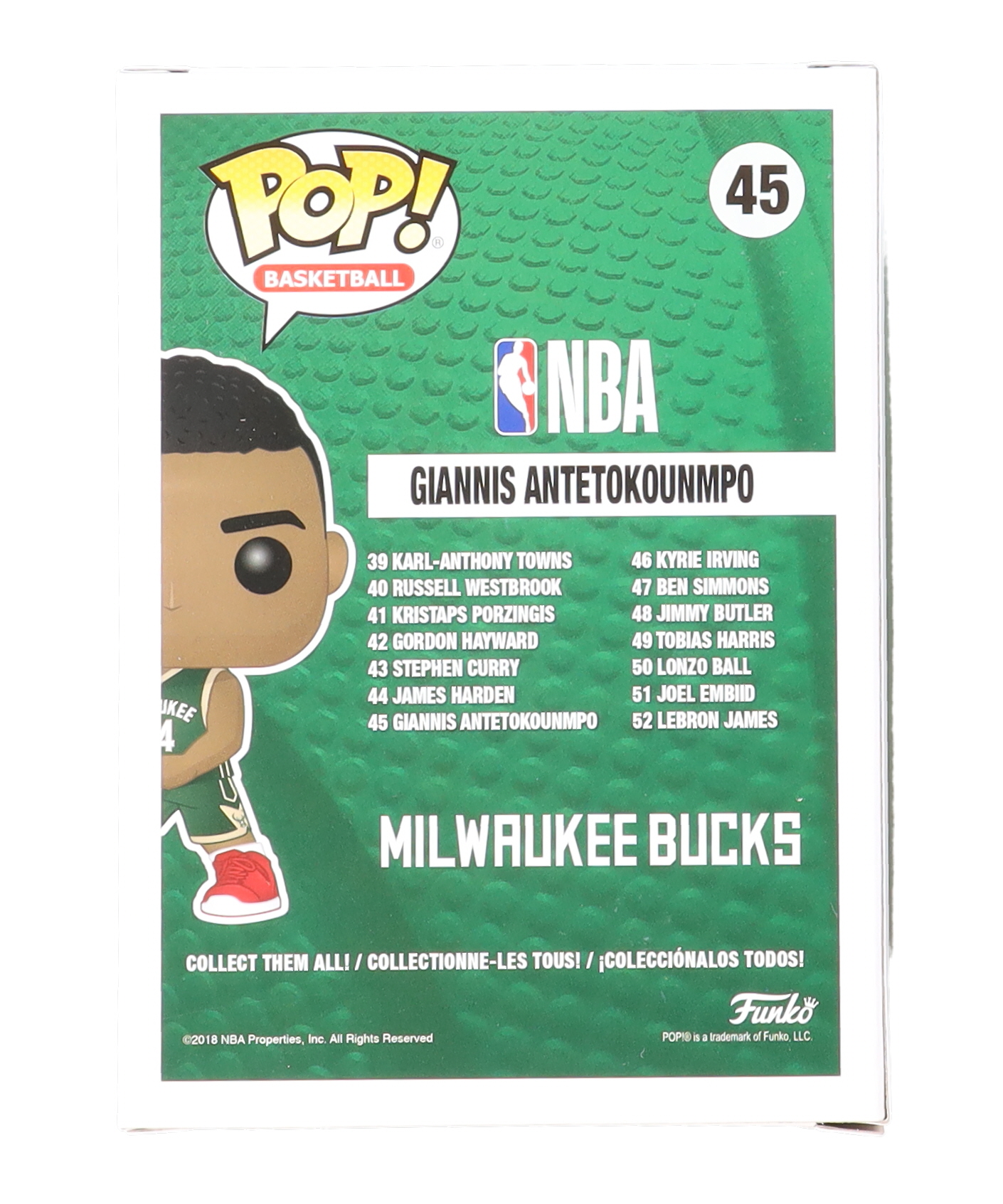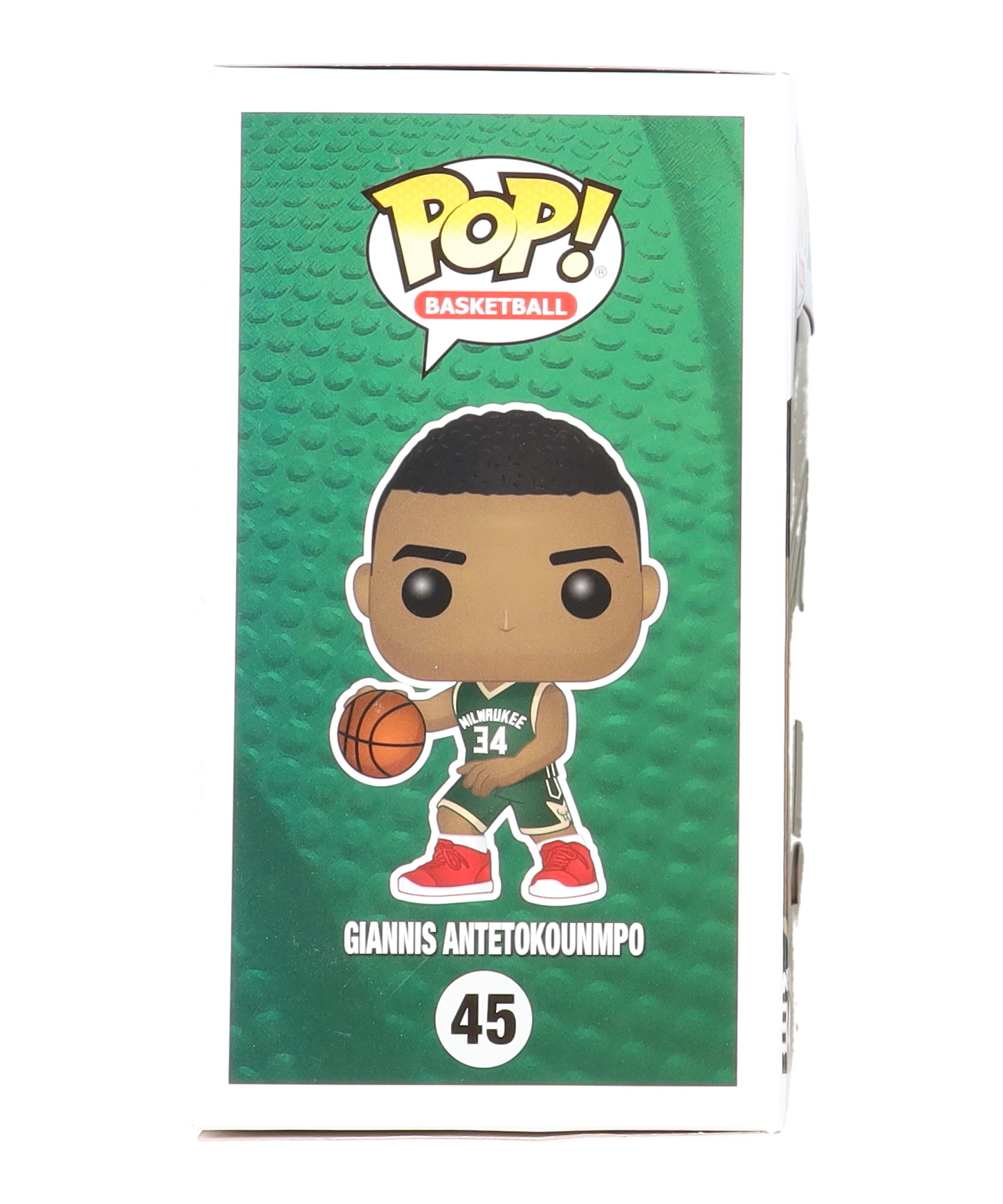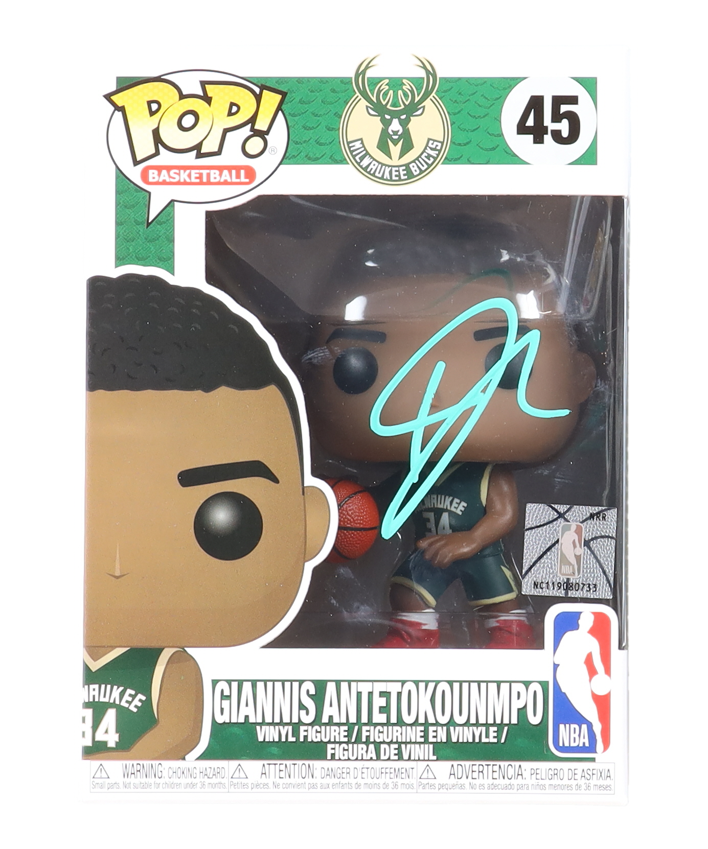 Funko Pop! vinyl figure measures approximately 4" tall and has been hand-signed on the packaging by Giannis Antetokounmpo (Milwaukee Bucks).