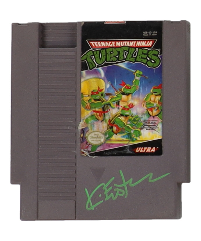 This original 1985 Teenage Mutant Ninja Turtles Nintendo Entertainment System video game cartridge has been hand-signed by the co-creator of the Teenage Mutant Ninja Turtles (TMNT), Kevin Eastman.