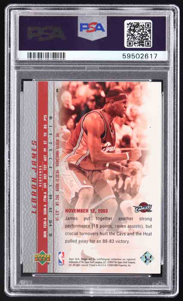 LeBron James 2003-04 Upper Deck Phenomenal Beginning LeBron James #8 RC / Energetic and Enthusiastic (PSA 9)