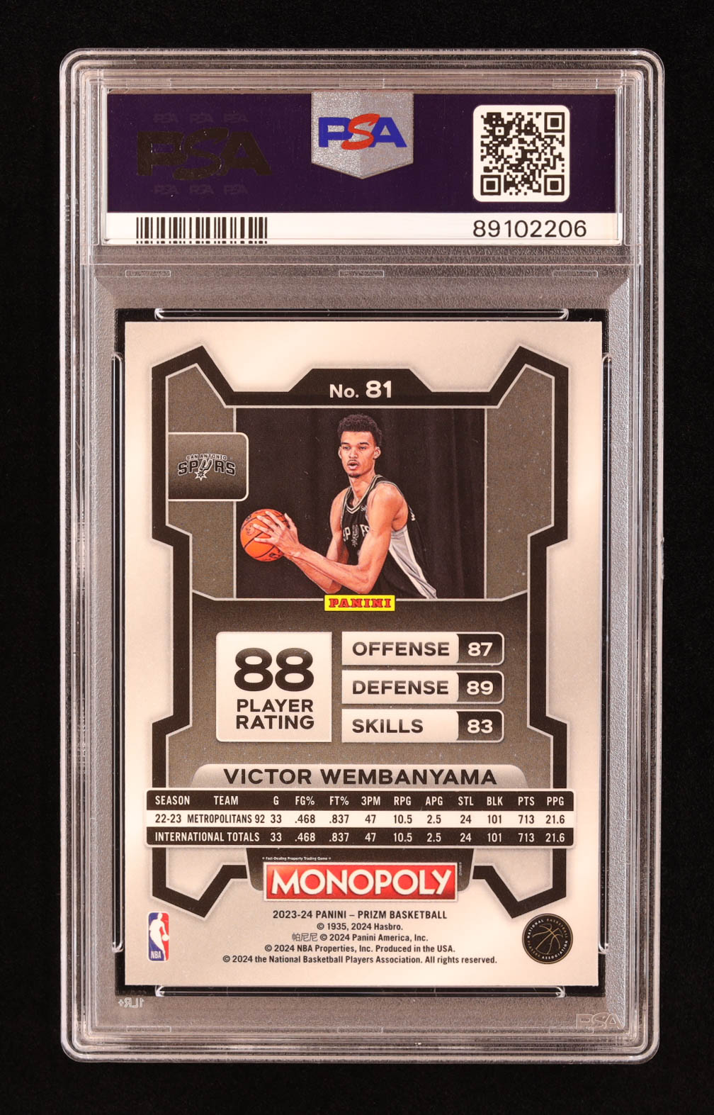 Victor Wembanyama 2023-24 Panini Prizm Monopoly #81 RC (PSA 10)