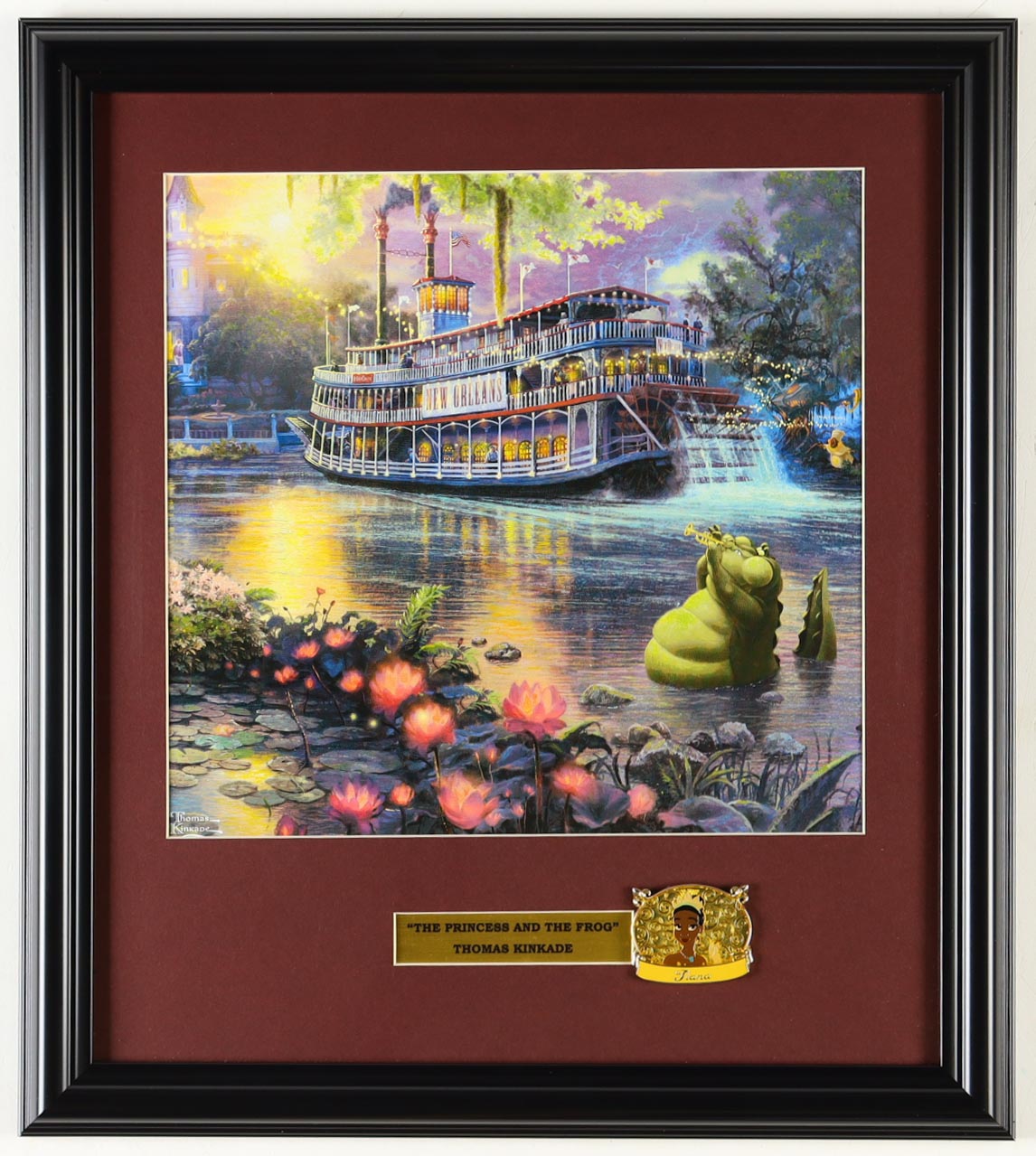 Thomas Kinkade "The Princess and the Frog" Custom Framed Print Display with Princess Tiana Character Pin