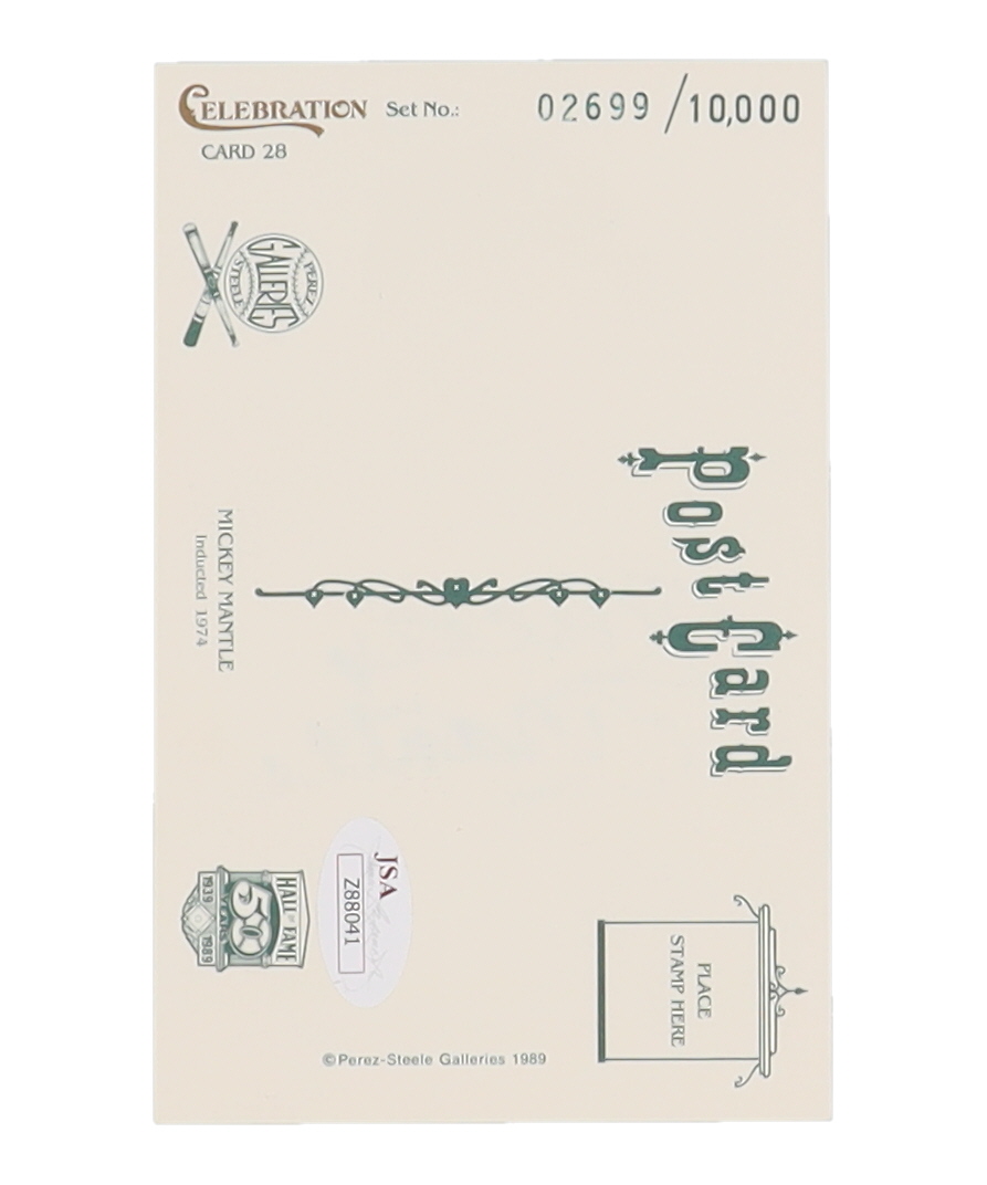 Mickey Mantle Signed LE 1989 Perez-Steele Celebration Postcard #28 (JSA)