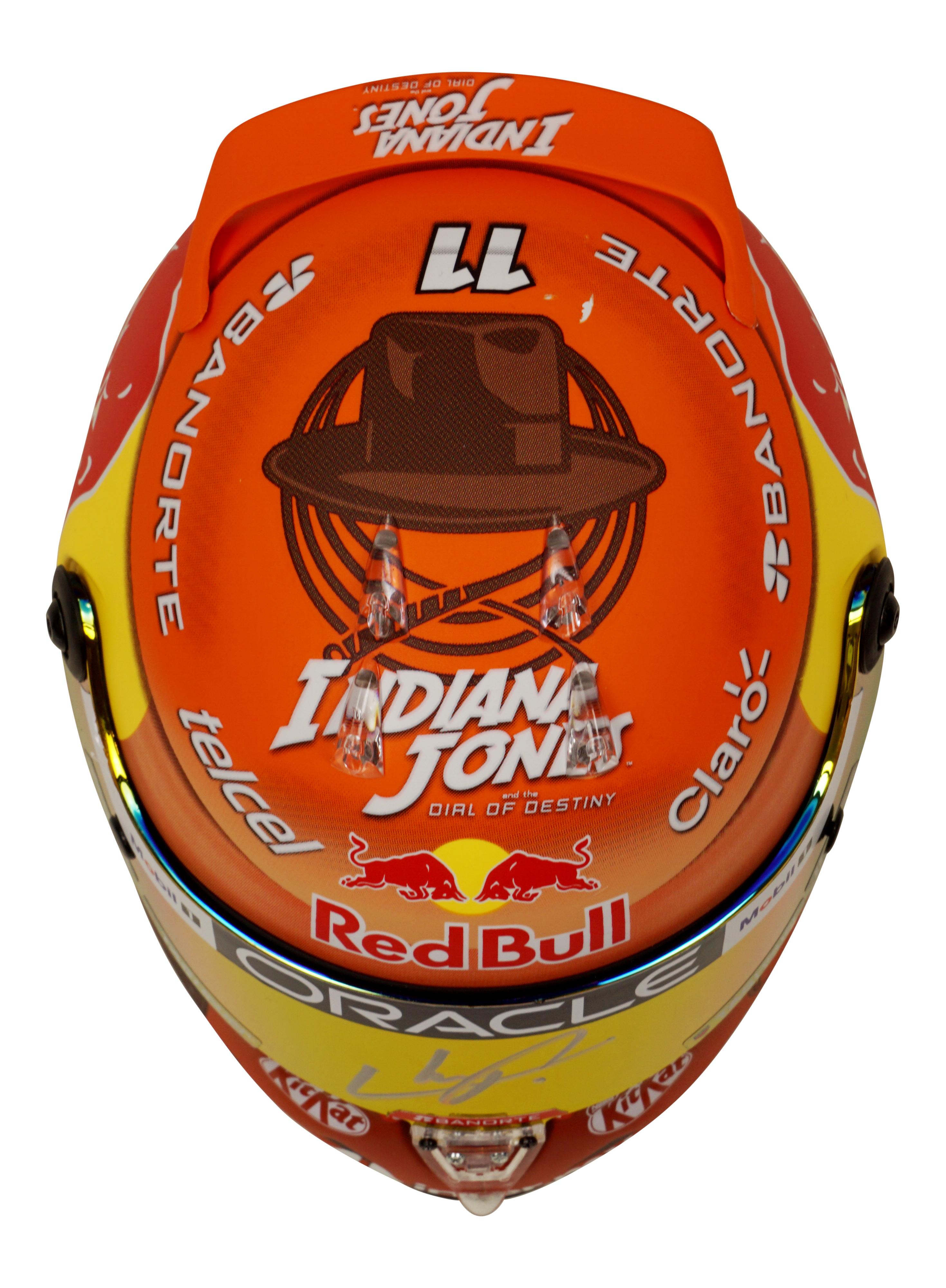 Red Bull "Disney" 2023 1:2 scale racing mini helmet has been hand-signed by Sergio Perez.