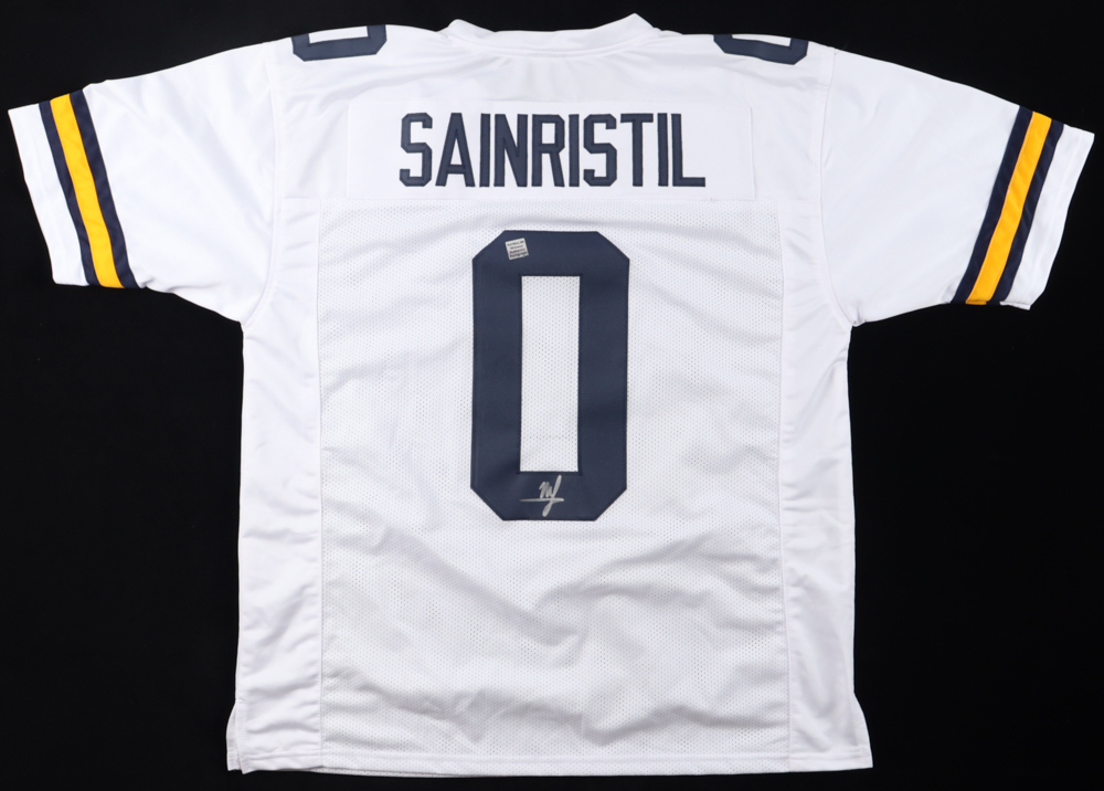 Custom jersey with everything sewn on, size XL. Hand-signed by Mike Sainristil.