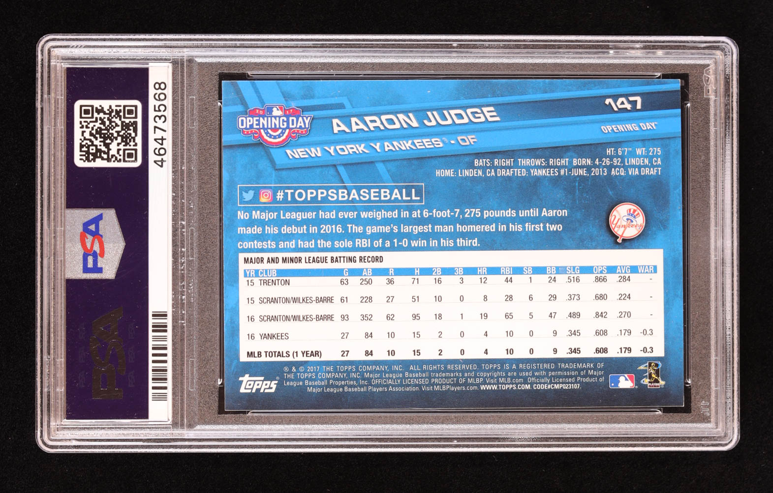 Aaron Judge 2017 Topps Opening Day #147 RC (PSA 9)