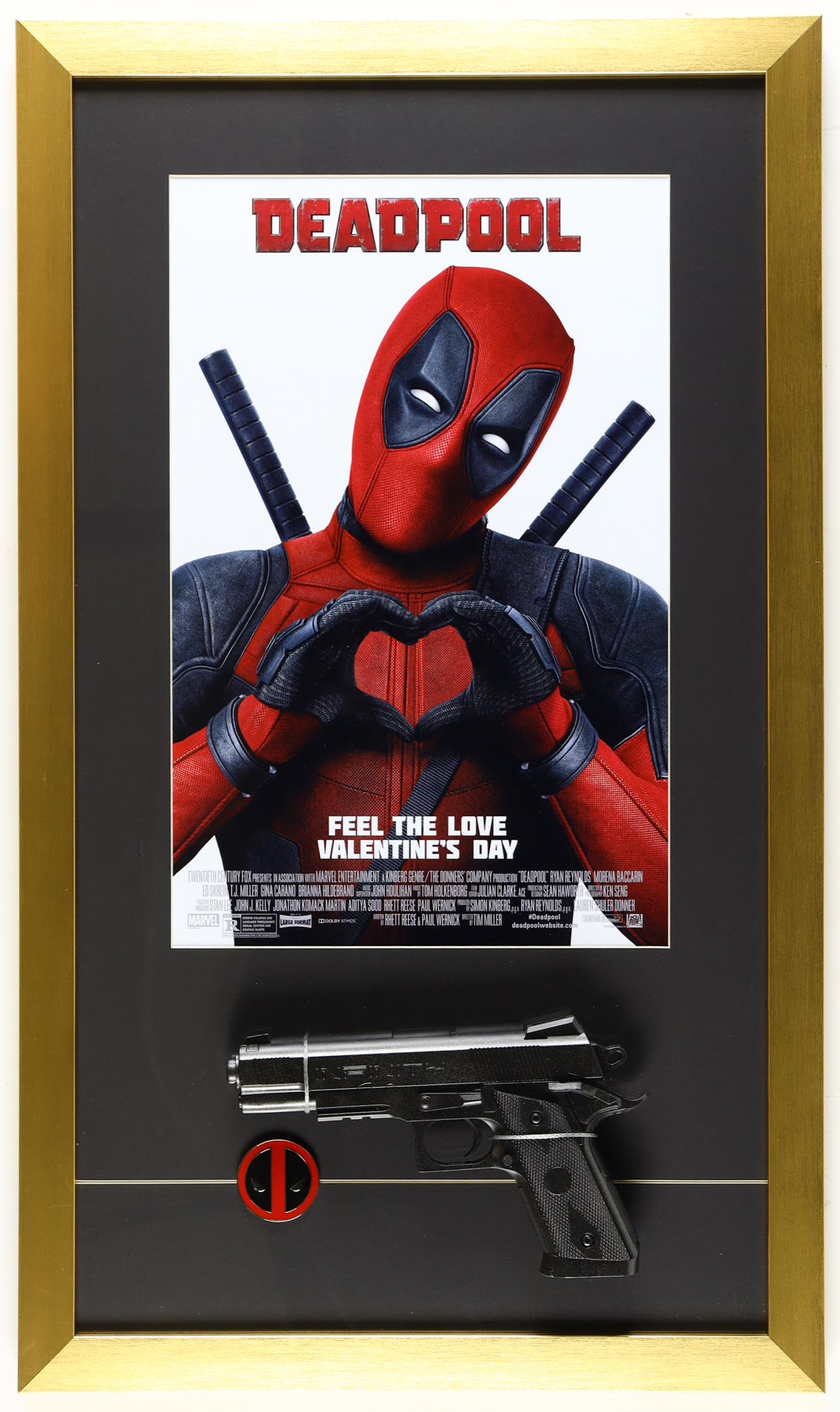 "Deadpool" Custom Framed Poster Print Display with Replica Prop Pistol & Character Logo Pin