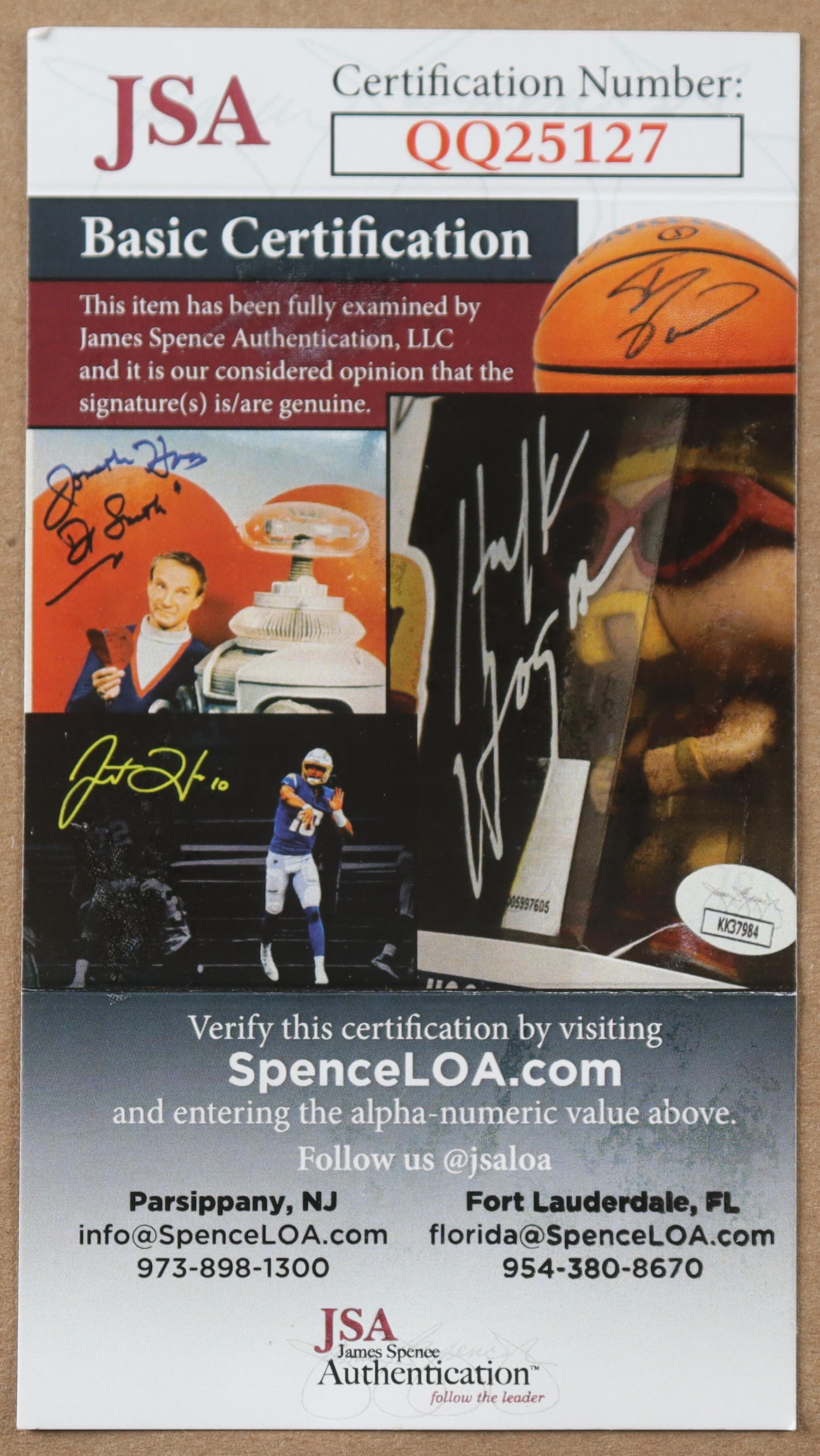 The autograph includes an official James Spence Authentication (JSA) hologram and matching COA for authenticity purposes.