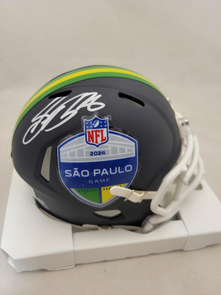 Riddell NFL Sao Paulo Game logo speed mini helmet. Hand-signed by Saquon Barkley (Philadelphia Eagles).