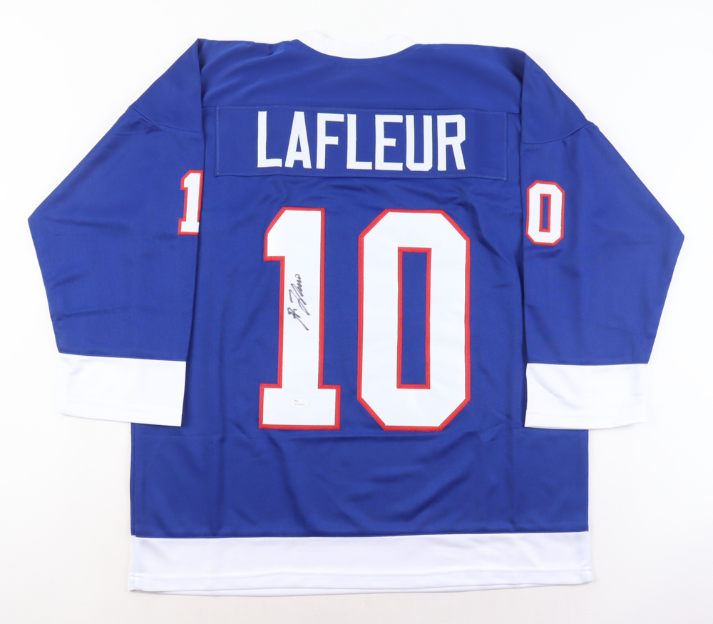 Custom jersey with everything sewn on, size XL. Hand-signed by Guy Lafleur (D. 2022, Montreal Canadiens, HOF).