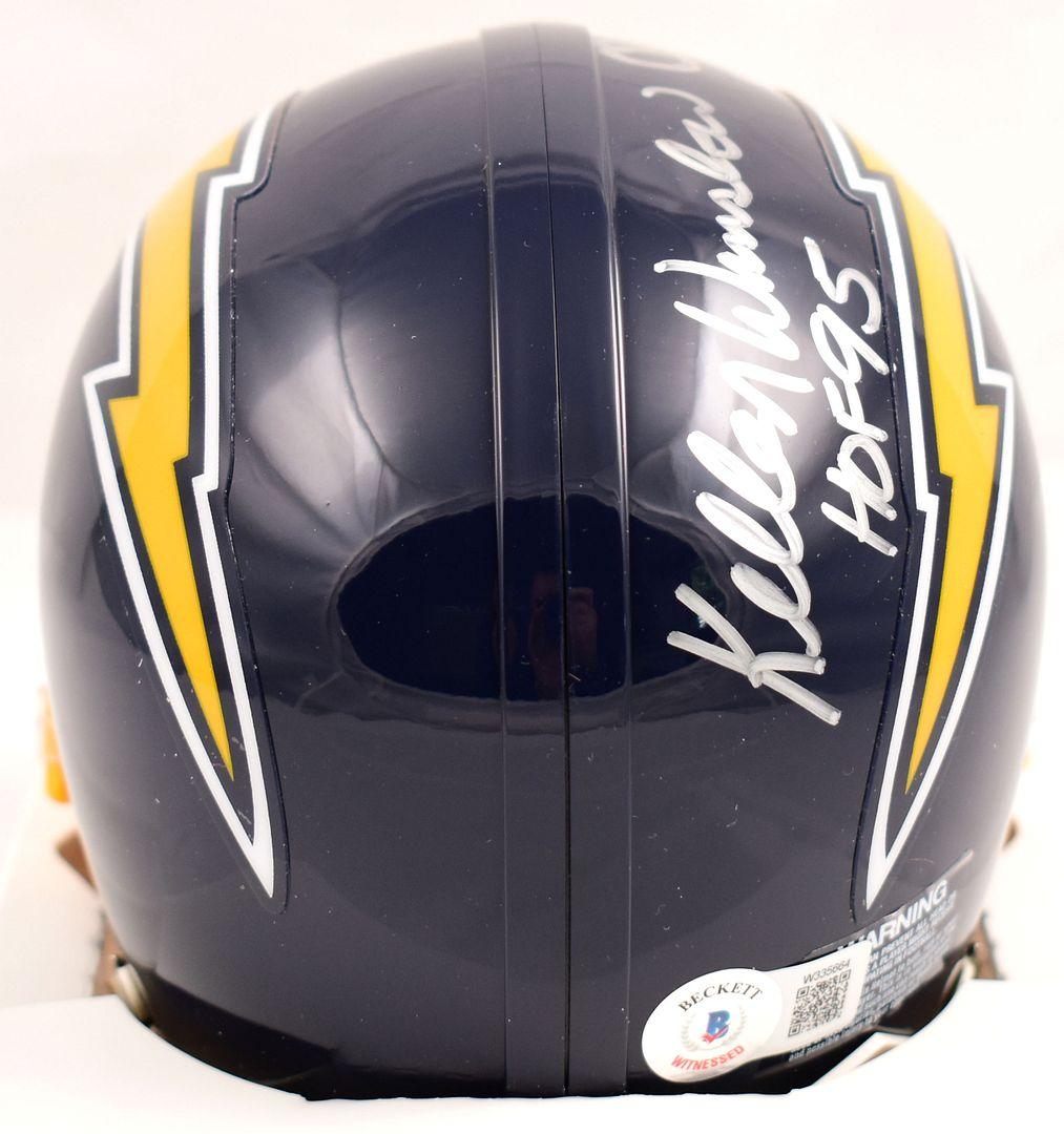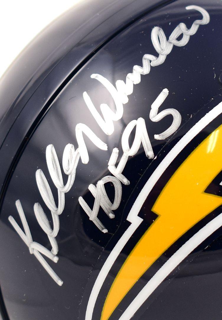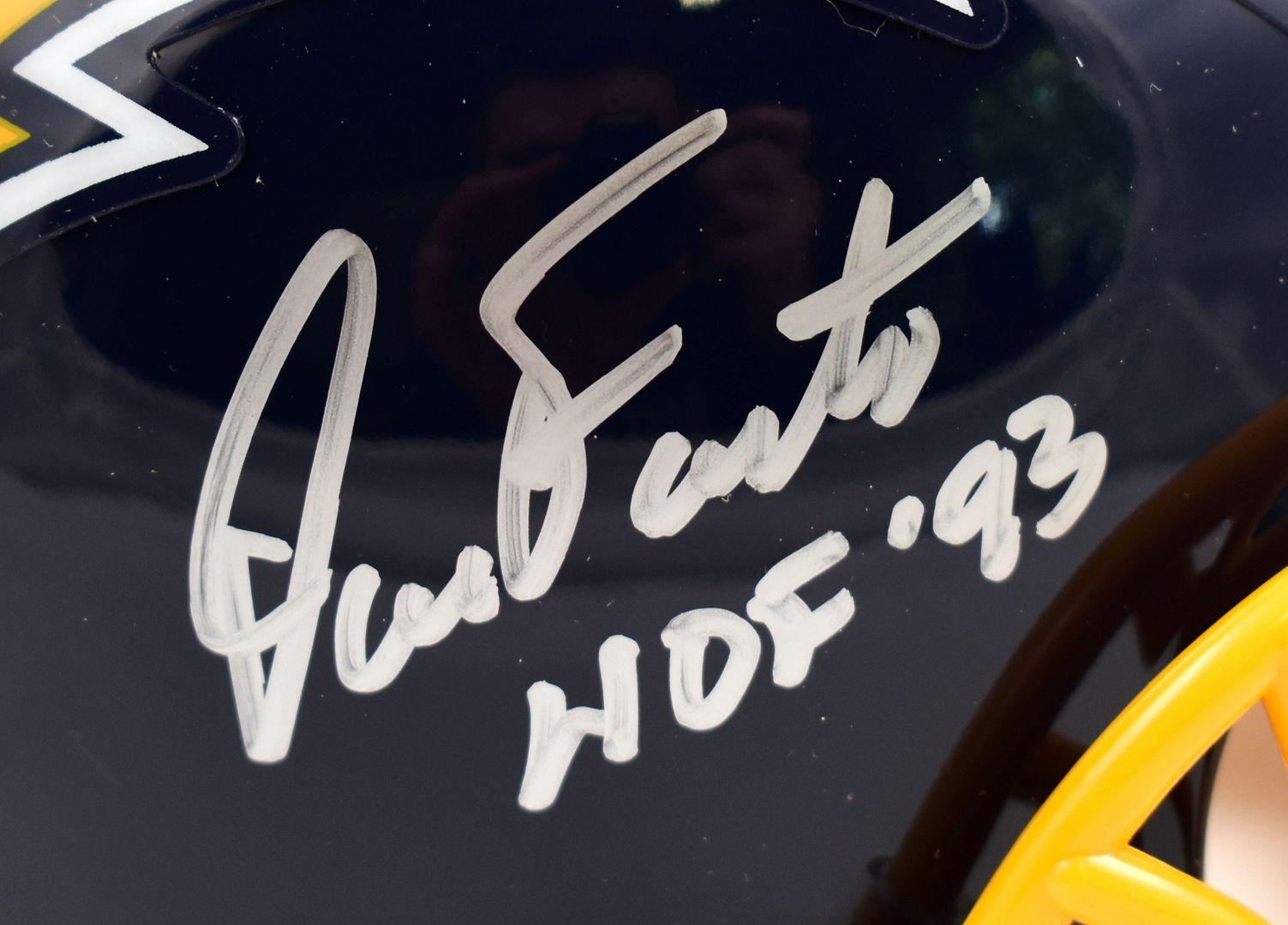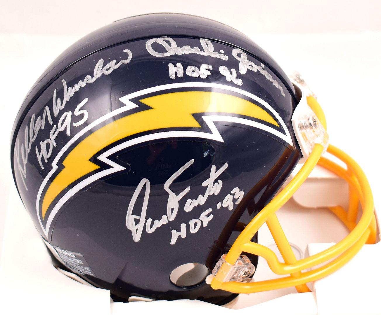 Riddell San Diego Chargers mini helmet. Hand-signed and inscribed by Dan Fouts (HOF), Kellen Winslow (HOF) and Charlie Joiner (HOF).