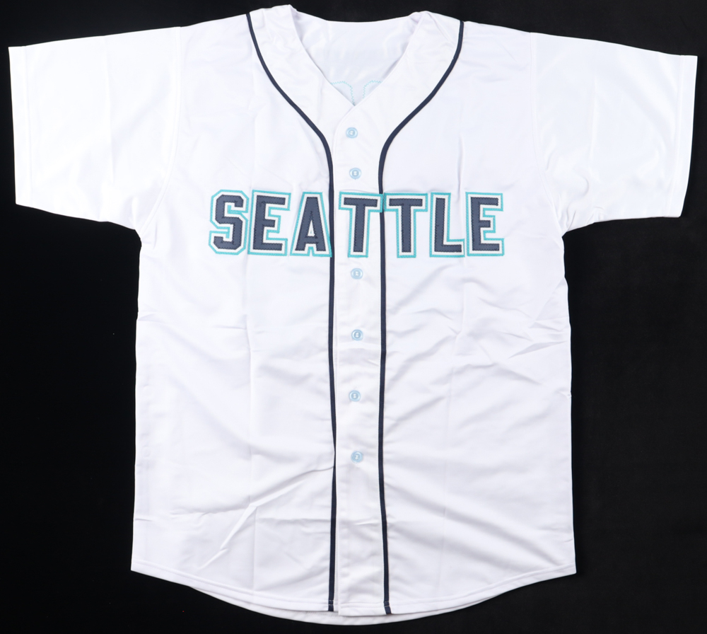 Custom jersey. Everything is sewn on, size XL. Hand-signed and inscribed by Julio Rodriguez.