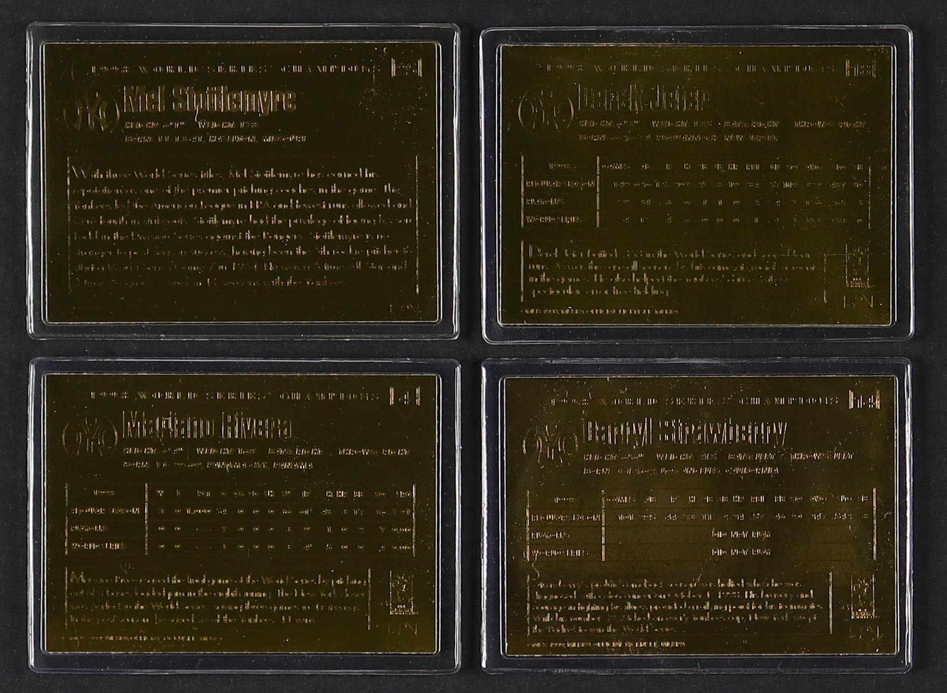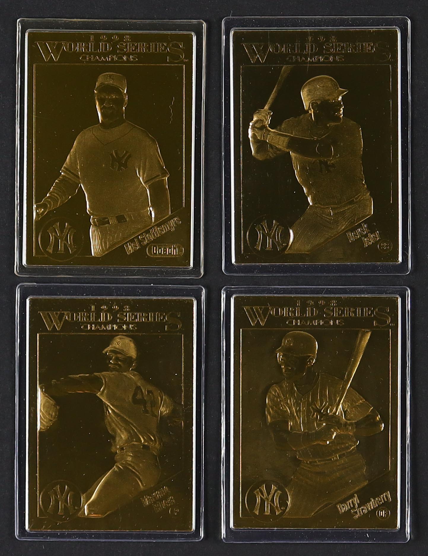 1998 World Series New York Yankees Team Complete Set of (32) 22Kt Gold Baseball Cards with Darryl Strawberry #14, Tim Raines #24, Mariano Rivera #4, Derek Jeter #18 with Binder