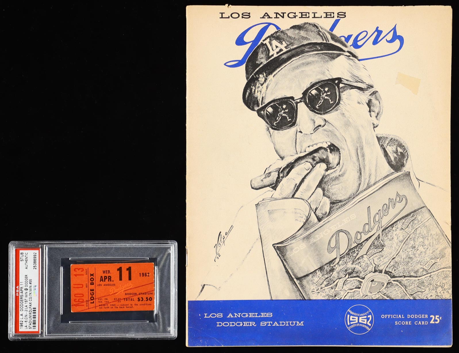1962 First Win At Dodger Stadium Ticket Stub With Original Game Program (PSA)