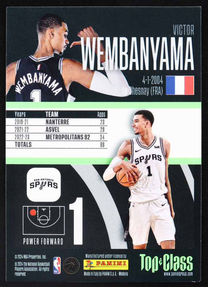 Victor Wembanyama 2023-24 Panini Top Class #261 RC / New Sensation