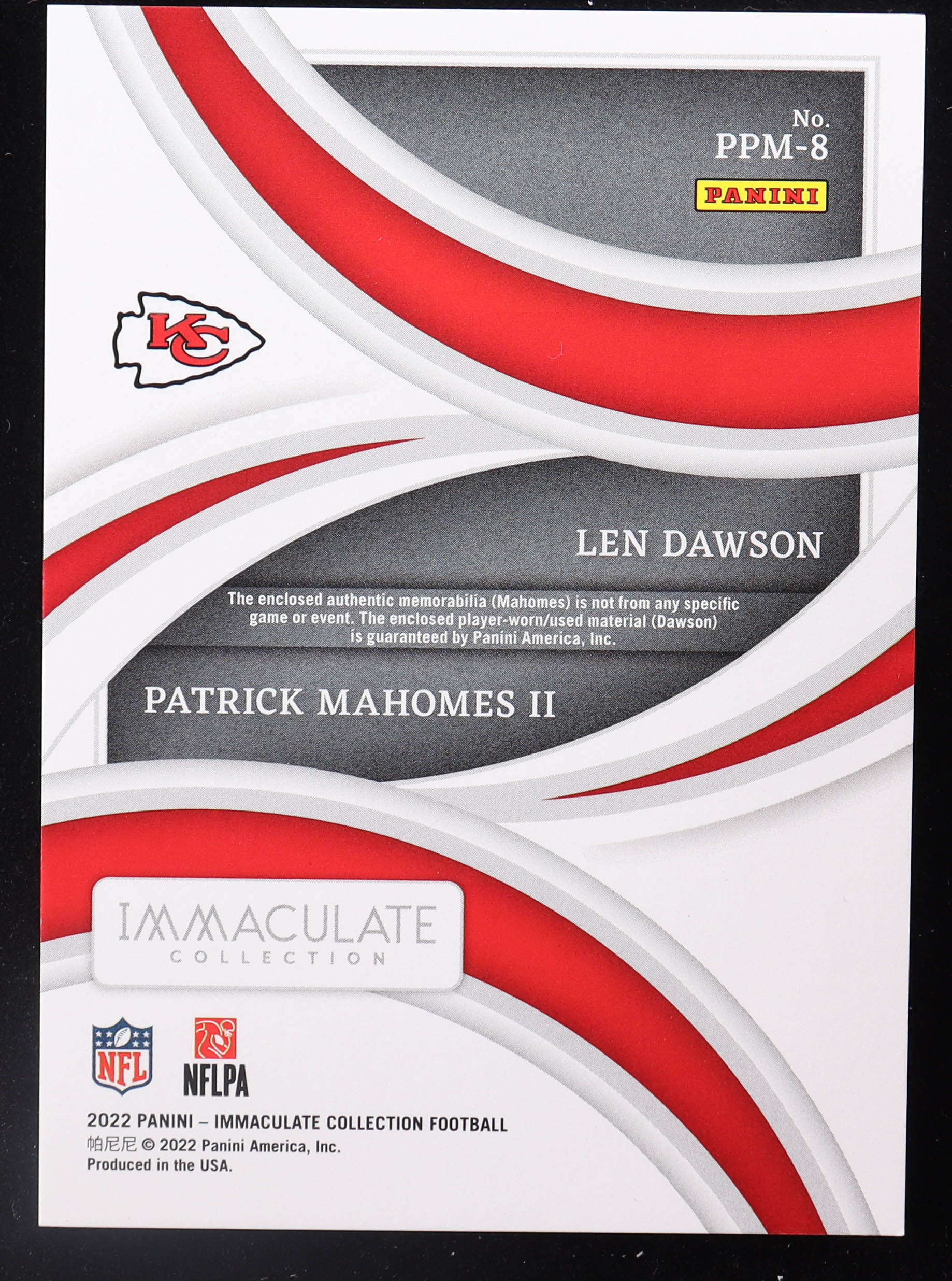 Len Dawson / Patrick Mahomes II 2022 Immaculate Collection Past and Present Materials #8 #07/99