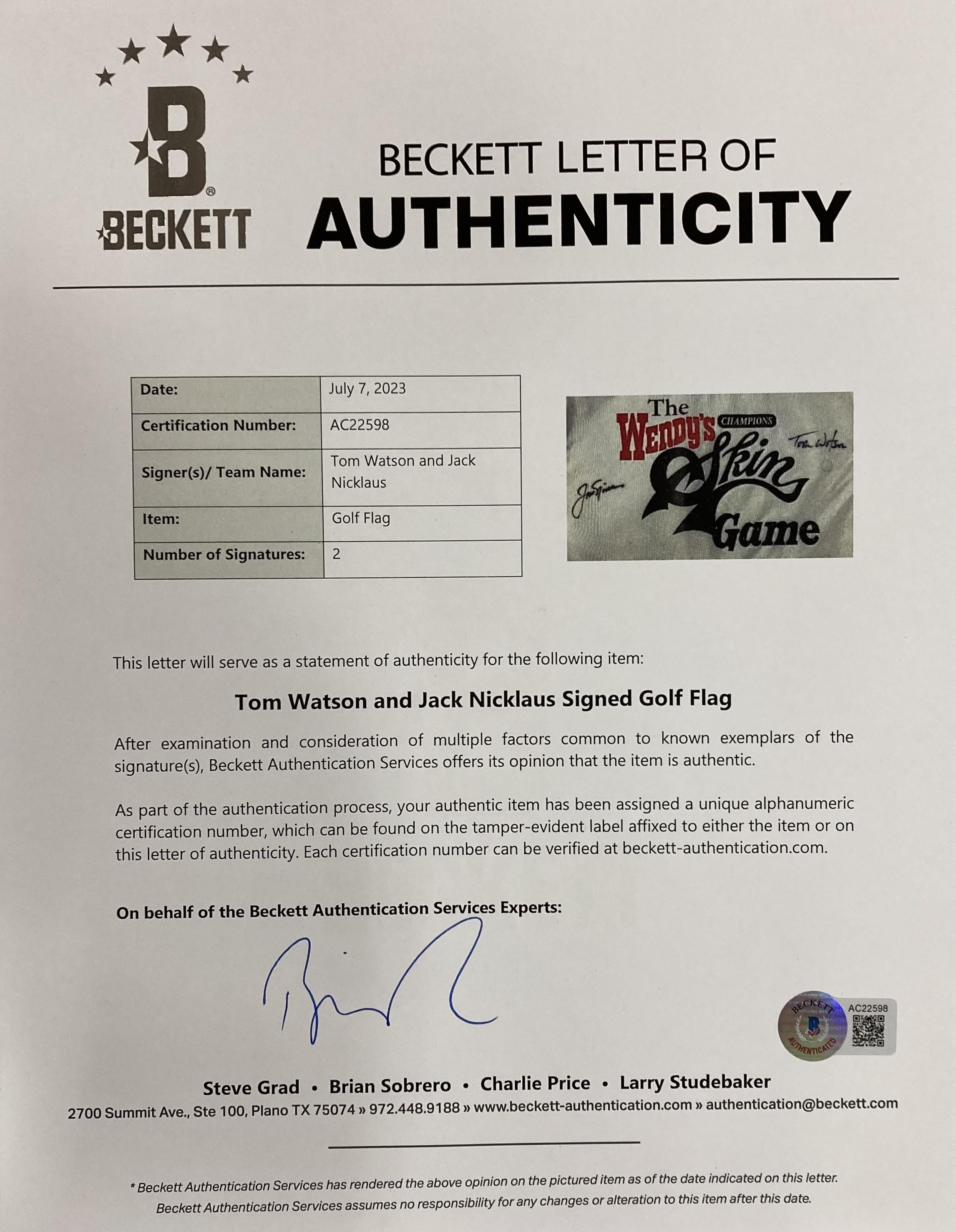 Jack Nicklaus & Tom Watson Signed Custom Framed Wendy's Champions Golf Flag (Beckett)