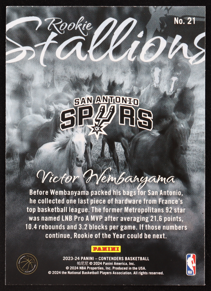 Victor Wembanyama 2023-24 Panini Contenders Rookie Stallions #21 RC