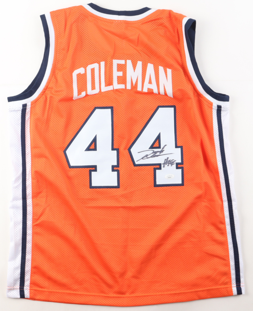 Custom jersey with everything sewn on, size XL. Hand-signed by Derrick Coleman. Please note, the signature has bled.