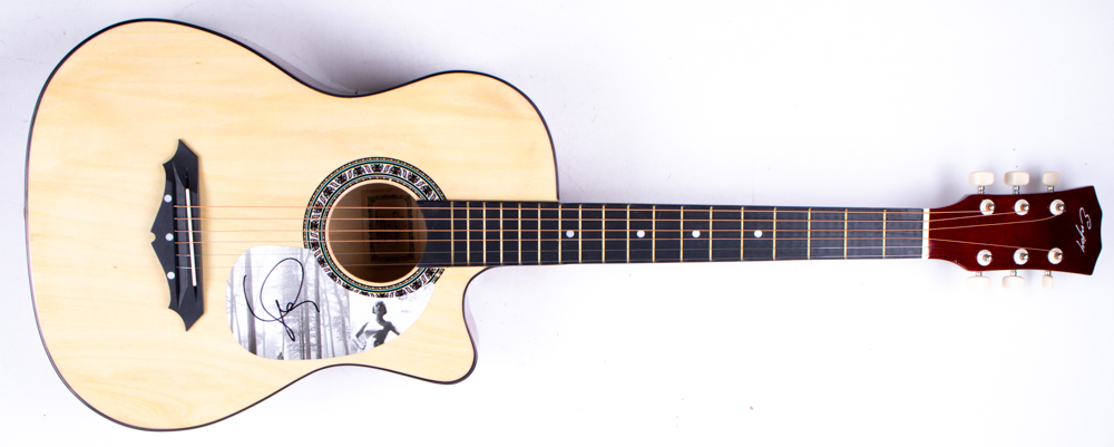 Enjoy Acoustic guitar measures approximately 38" in length and has been hand-signed on a CD cover that has been repurposed as a pick-guard by Taylor Swift.