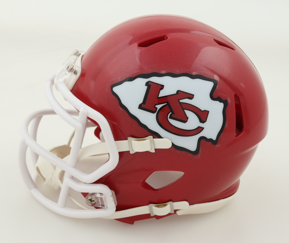 Riddell Kansas City Chiefs Speed mini helmet has been hand-signed by Leo Chenal.