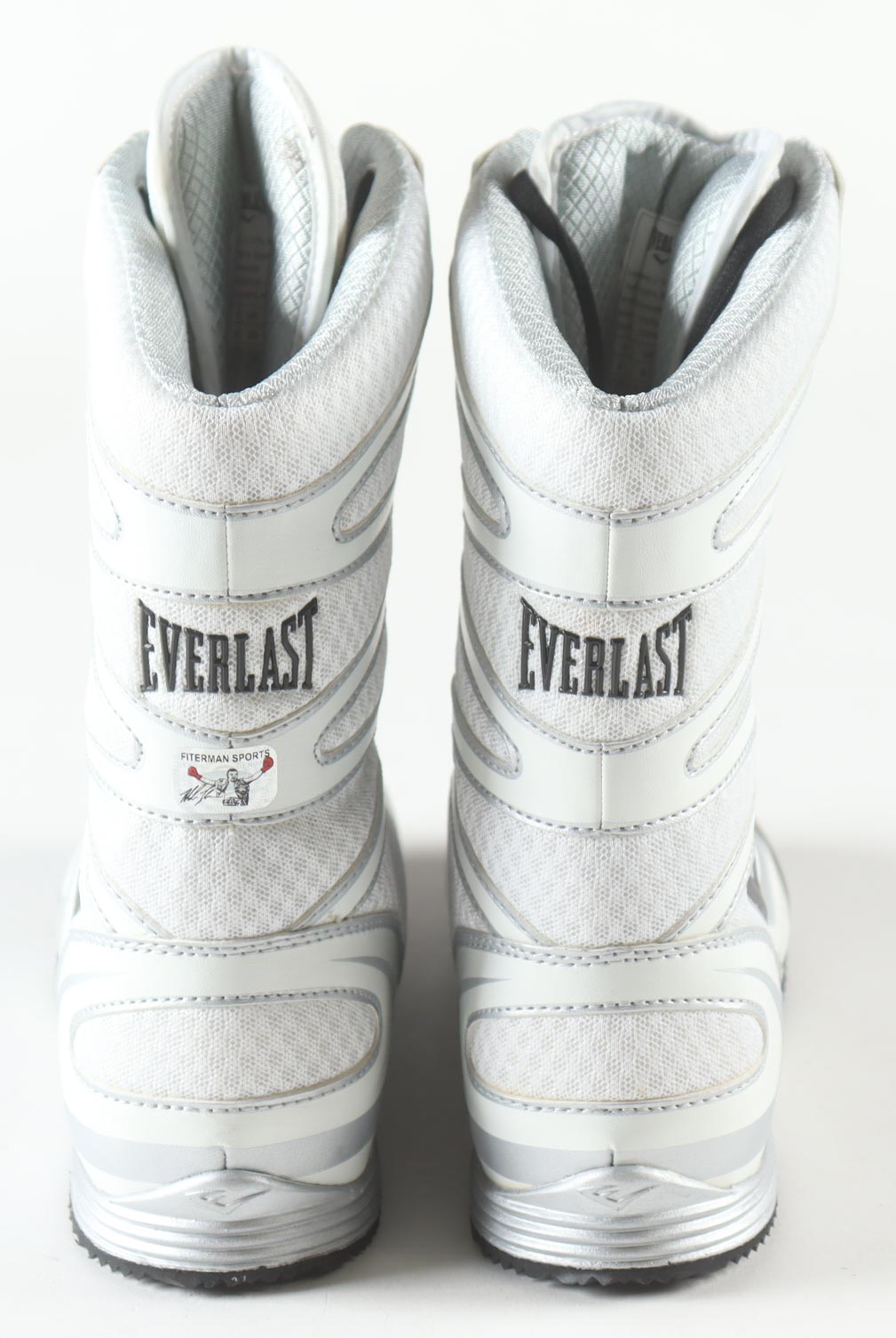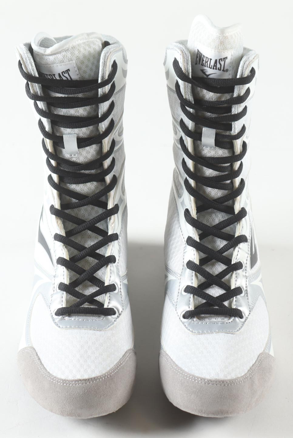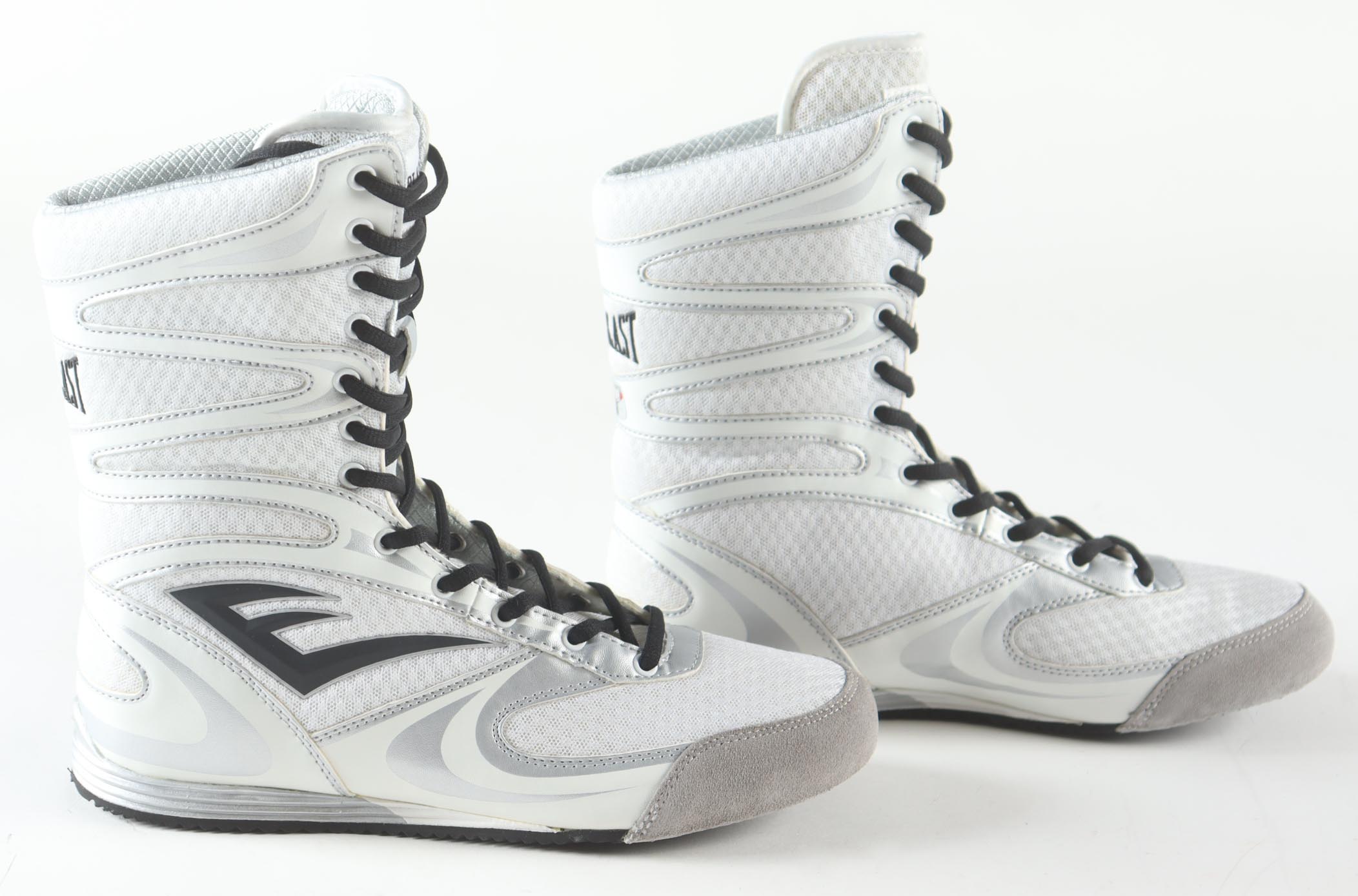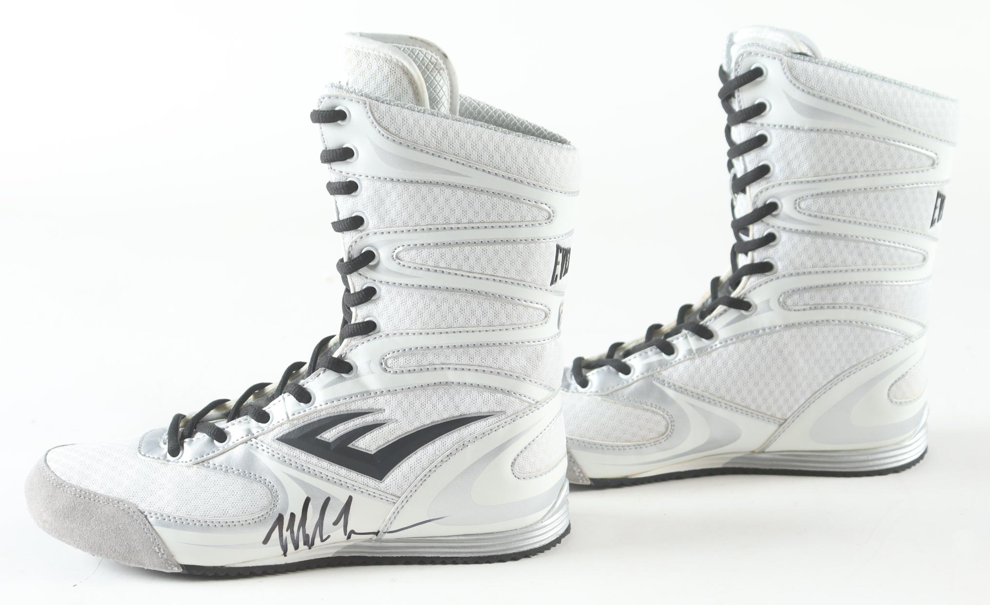 Pair of (2) Everlast professional boxing boots. The left boot has been hand-signed by Mike Tyson (HOF).