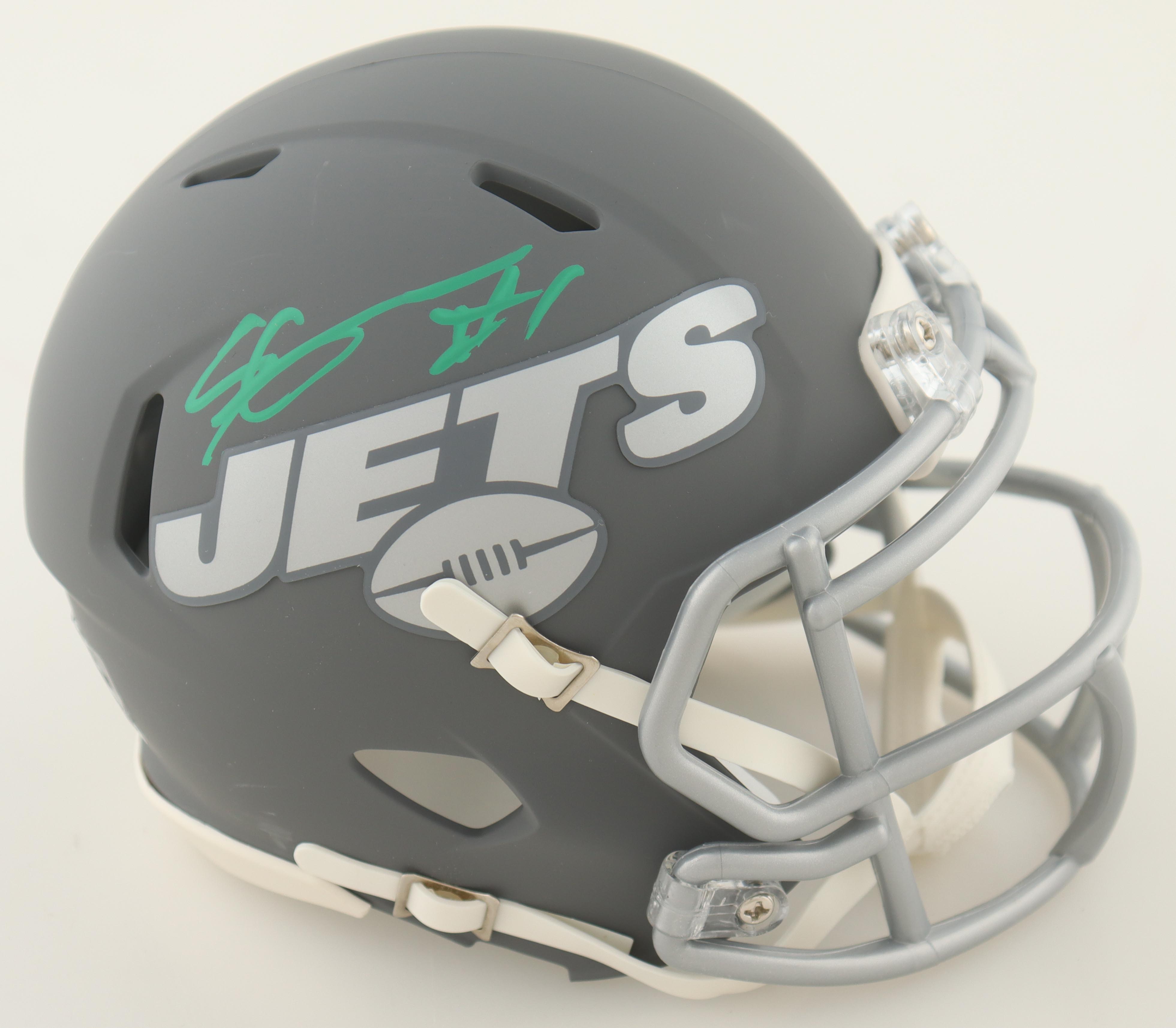 Riddell New York Jets Slate Alternate Speed mini helmet. Hand-signed by Ahmad "Sauce" Gardner.