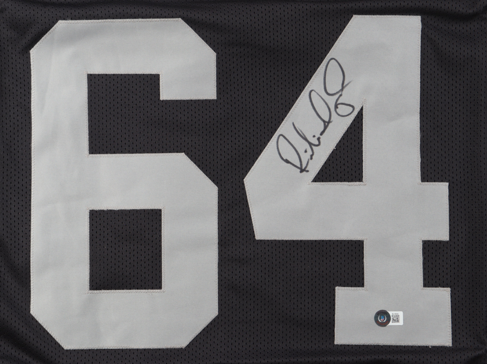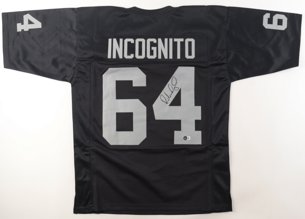 Custom football jersey. Everything sewn on, size XL. Hand-signed by Richie Incognito.